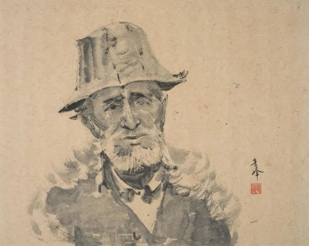 《维吾尔族老人肖像》纸本水墨 60×70cm 2005年
