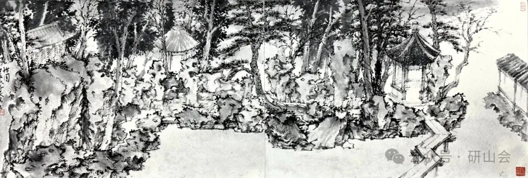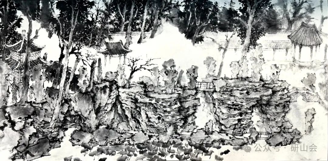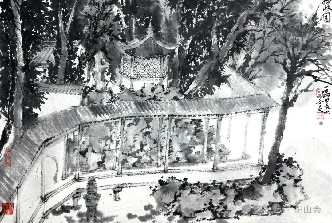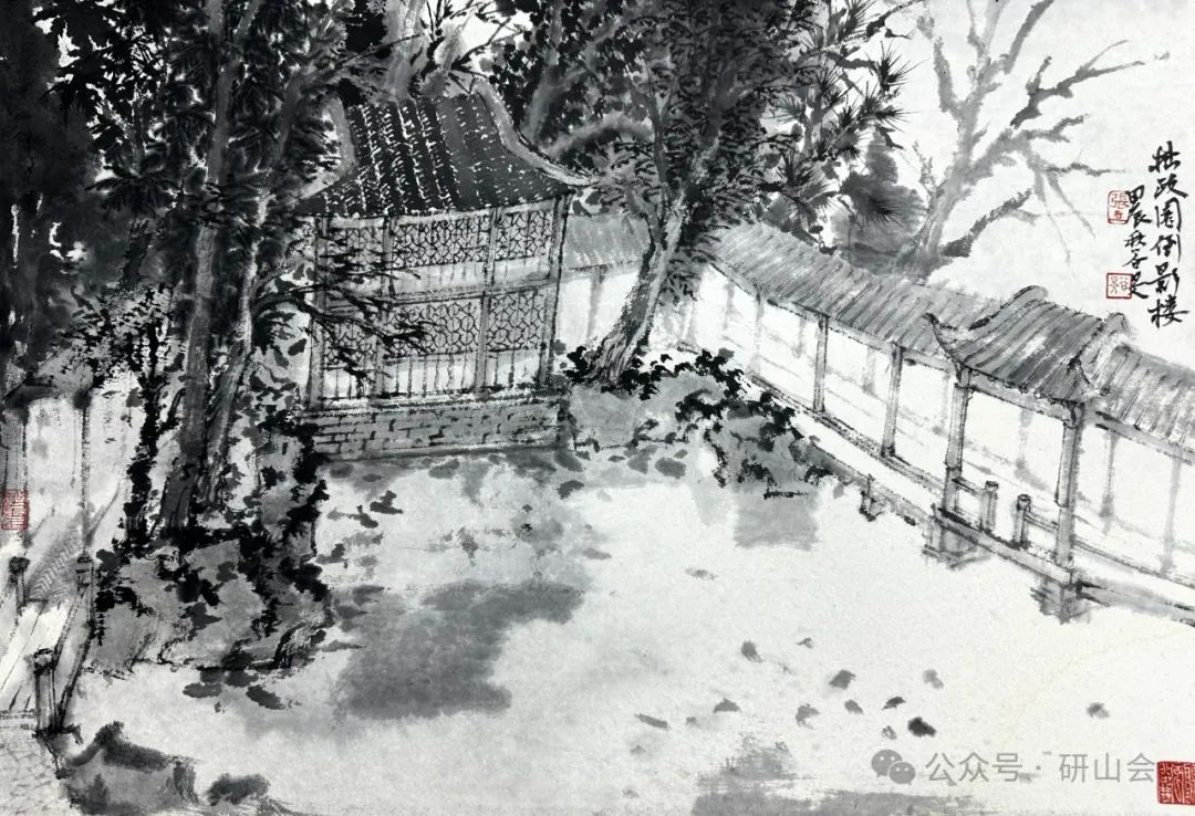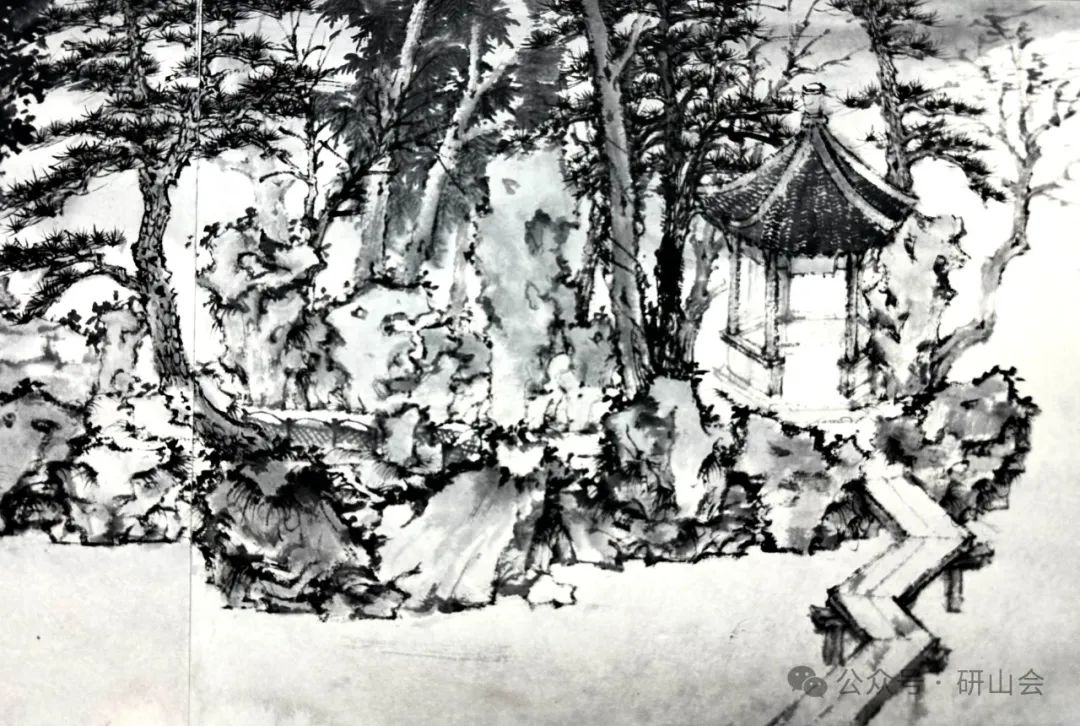 能厚重也能清逸,厚重也兼空灵,是张谷旻笔墨的另一特点。《九华山系列》大多是厚重而空灵的。画林木烟岚墨气厚重,画院落房屋笔意幽淡。两方面形成对比,又和谐统《抱朴山庄》、《西泠印社》、《湖山清晓》、《山庄清凉》等扇面作品,以渴笔淡画西湖园林,结景严密,画法精致而淡雅,含倪云林之清逸而无其孤峭,近王蒙之毛厚而无其繁密。在山水写生(或写生性创作)中能如此自如地运用传统笔墨进行写生,是对现代中国画写生的一个超越。