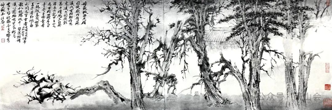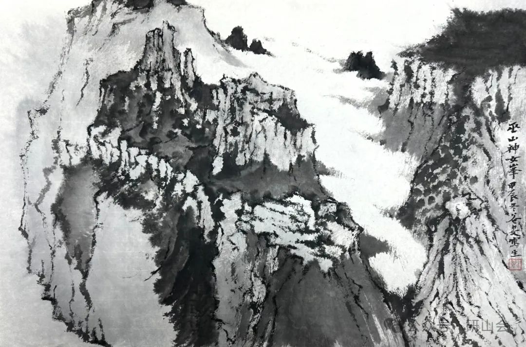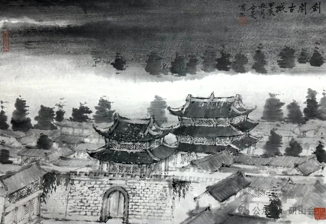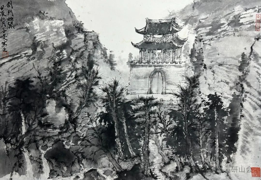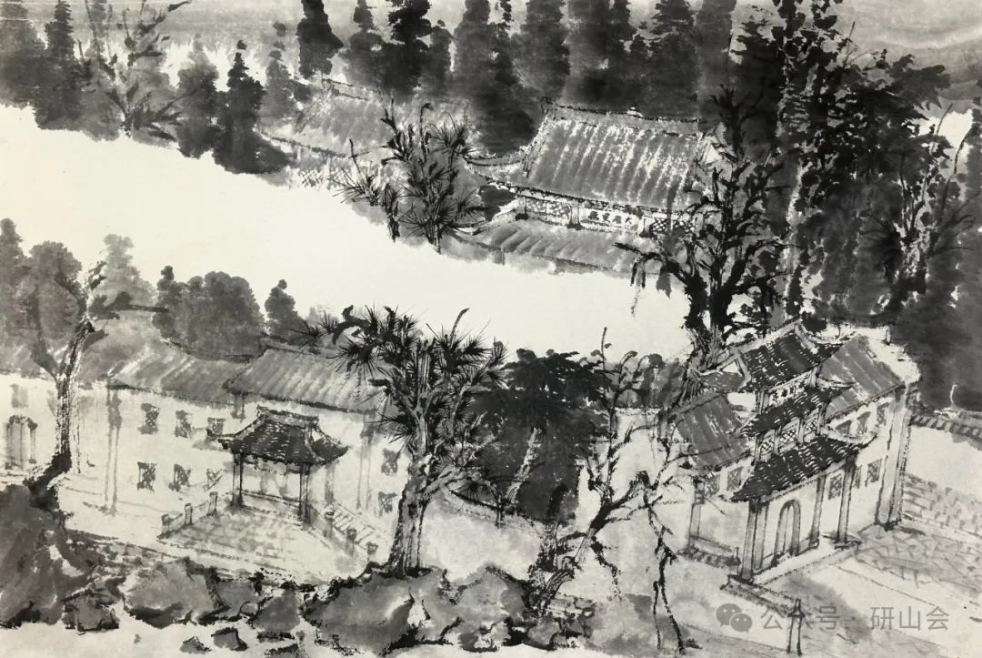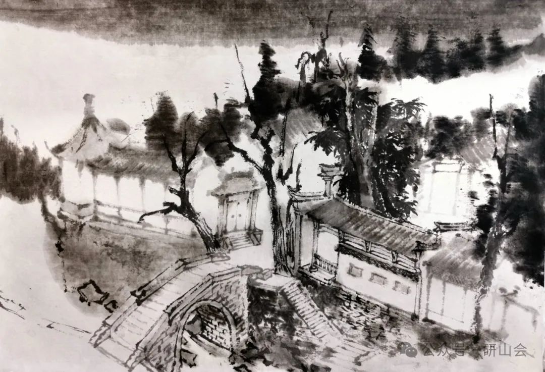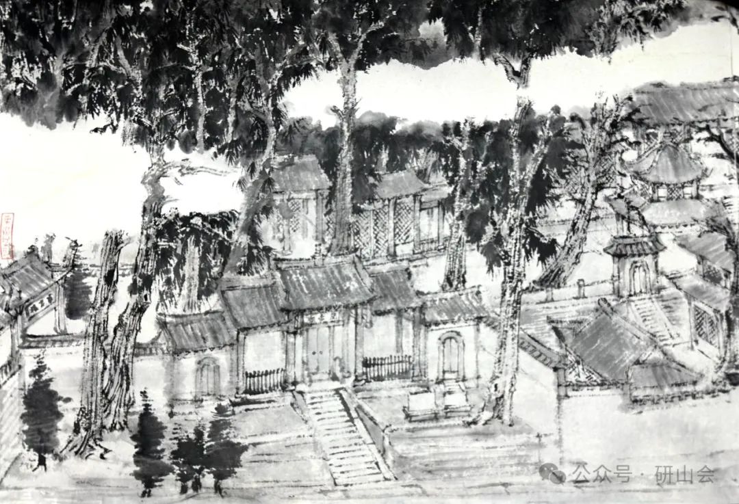 约1994年前,张谷旻一度迷恋西北景观,以细笔作大画,构筑奇雄神秘,具有宗教感的西部幻境。1994年后又转画江南,风格为之一变。所画九华禅寺、西湖园林或者古歙村寸居,大都岭岫出云,静无人迹,也没有鸟飞与风动,似乎是对烟雨江南的幽寂凝视。笔法沉实,风格以浑厚为基调,内含清峻。墨色滋润而有枯涩,晴光明灭,苍翠欲滴。概言之,其笔墨可用笔随形运、墨从笔变、笔骨墨韵、相得益彰来概括。他重视笔墨与形象的统一,拒绝将笔墨与形象造境割裂开的“线条游戏”,但他的笔墨又不仅是造型工具,而仍有独立于造型之处的表现性。