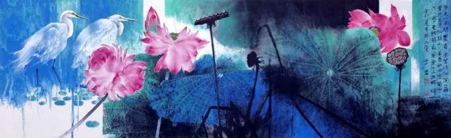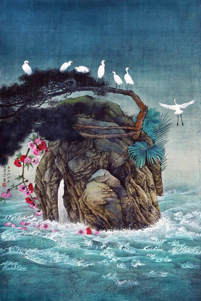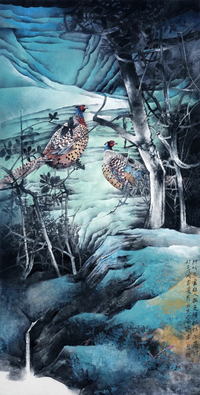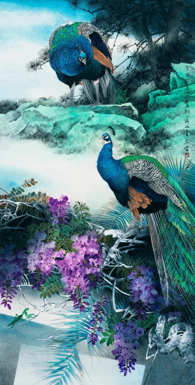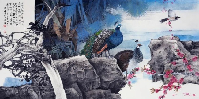 我的艺术风格充满探索性,从最初的大写意,小写意,到工笔,兼工写,一路戏剧性地发展和变化。从最早的折枝花鸟画到富于深邃背景的大景花鸟画,到结合具象与抽象的元素,结合构成与现代审美意识,画面中的花木、山川似乎都是从现实中被提炼出来的,却又在现实中难以寻觅,我喜欢把山川隐藏在一种长长久久的梦幻般的朦胧感中,如我近三十年的漂泊,离故乡时近时远,那种似乎被一种物象剥离的忧伤感,常常会笼罩在我喜欢的颜色背后,一切好像都充满着不确定性。