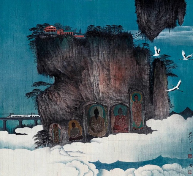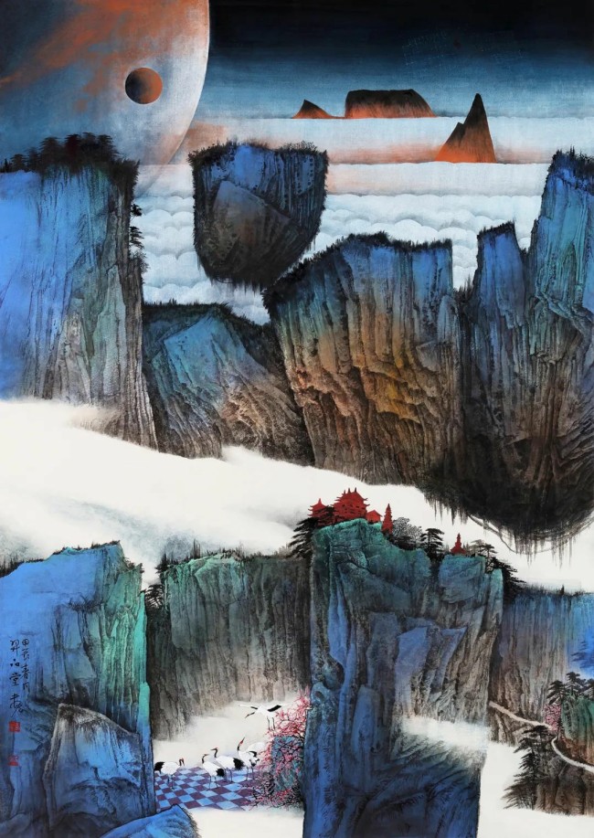 近些年,我把作品主题多聚焦于超乎现实世界与时空的表达,我希望通过自己画笔,把这些看似平凡却又超越自然的物像赋予一种不确定的超探索性。比如我对悬浮山石的处理,总想营造出一种超越时空的意境;包括我对其他物像细节的处理,使得熟悉的自然景物变得陌生而又充满神秘和奇特感。这或许算不得什么技巧,但每一幅作品背后都体现了我对现实感知的思考,我们是否真的感知到另一个时空中那些不为人知的“平凡”事物?