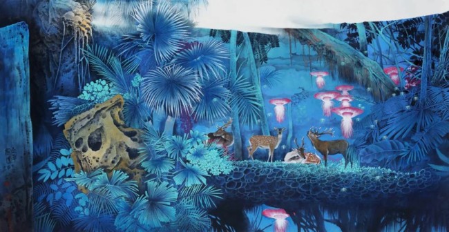 通过这些渲染的“蓝色”作品,我还想探讨对于时光的流逝。我把中国古老的传奇故事通过多层次的画面构建方式,让观者感受到过去与现在的交叠,甚至隐隐约约地感知未来。这种时空的模糊感让我们悄然进入一个梦境般的氛围中,在身临其境中感受一份着迷又耐人寻味的深意。在当下一个图像泛滥和大多千篇一律的绘画模式中,如何以独特的感知方式和对自然世界图像本质的反思?如何为观者提供新的视角,以及丰富的视觉层次和深刻的哲学内涵?这依然将成为我后面一个时期要做的重要功课。