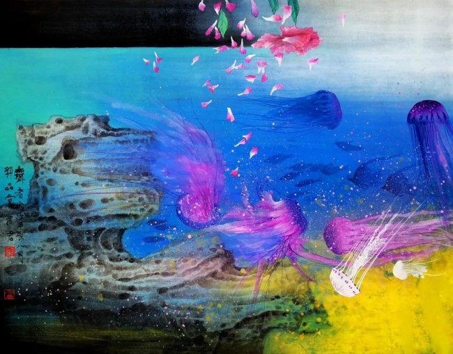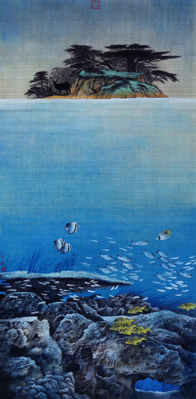 《与鲲同游》66.5cm×50cm 绢本设色 2023年