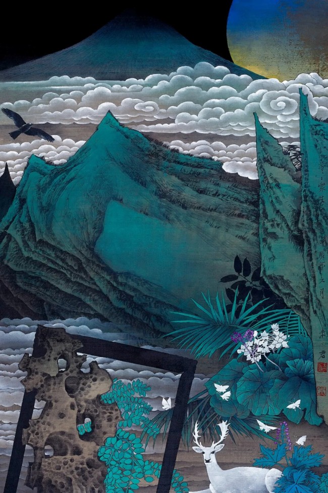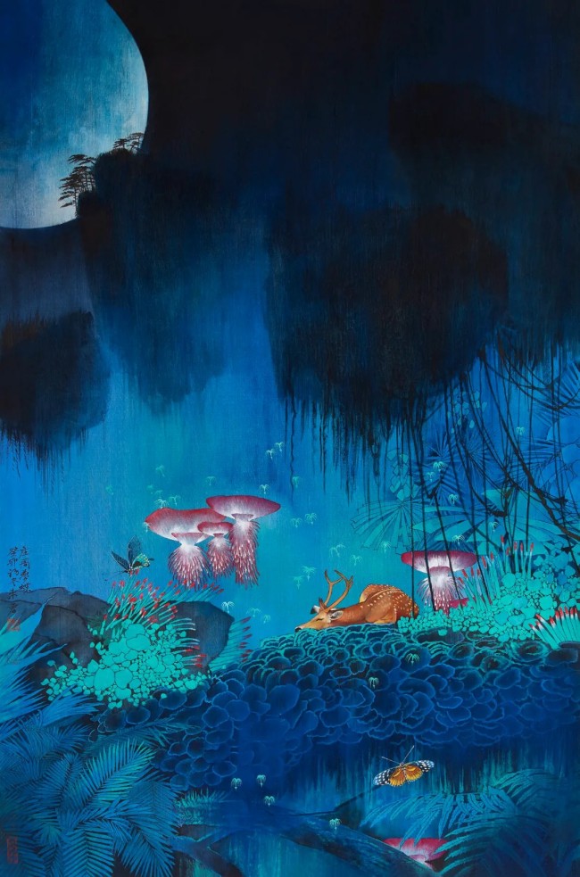 我本是诗人,或许还会有一种超乎诗人的对于颜色的想象力,在长期的创作中练就了对颜色的敏锐与洞察力。我喜欢用厚重的颜色制造画面的氛围感,同时在一些细节处采用轻薄的色彩层层铺开渲染,哪怕在最为深色的地方也能看得见里面的实质物像,这样使得画面在密实与轻盈之间形成对比,在明与暗之间形成对比,在虚与实之中形成对比。有时,我还会将不同的媒介混合在一起,比如矿物颜色、丙烯色、水彩色等,这种多样的材料运用会让作品充满触感和微妙的变化,同时也带有一种实验性的活力,致广大而尽精微。