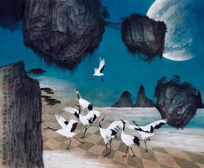 《鹤舞弄清影 》127.5cm×90cm 纸本设色 2024年