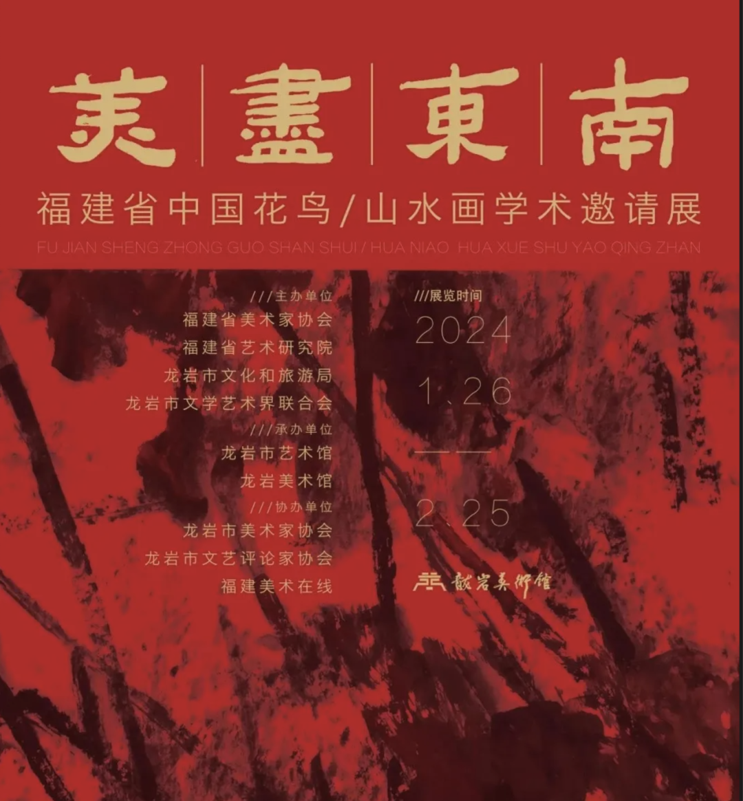 东南山水浓情蜜,花语莺啼报新年。福建山水、花鸟艺术历史悠久,源远流长,文化积淀深厚,在 2024年元月,新春来临之际,由福建省美术家协会、福建省艺术研究院、龙岩市文化和旅游局、龙岩市文学艺术联合会主办,龙岩市艺术馆、龙岩美术馆承办的“美尽东南”福建省中国花鸟、山水画学术邀请展,于龙岩市美术馆开展。此次展览是新时代福建山水、花鸟画创新发展的一次主题性展示。山水、花鸟画作为中国传统绘画中的重要分支,具有悠久的发展历史和独特的艺术魅力,经历朝历代无数先贤的浇灌、精炼发展赋予了山水、花鸟画深厚的美学思想、文化内涵以及独特的审美意境,为中国美术史留下了无可替代的宝贵精神财富。从最初的起源时期到现代的多元化时期,山水、花鸟画都各自经历了不同的发展阶段和风格变化,但始终保持的是对自然界的描绘和对生命力的表达。时至今日,仍可深切地感受到古人对于自然万物生灵的崇敬之心。