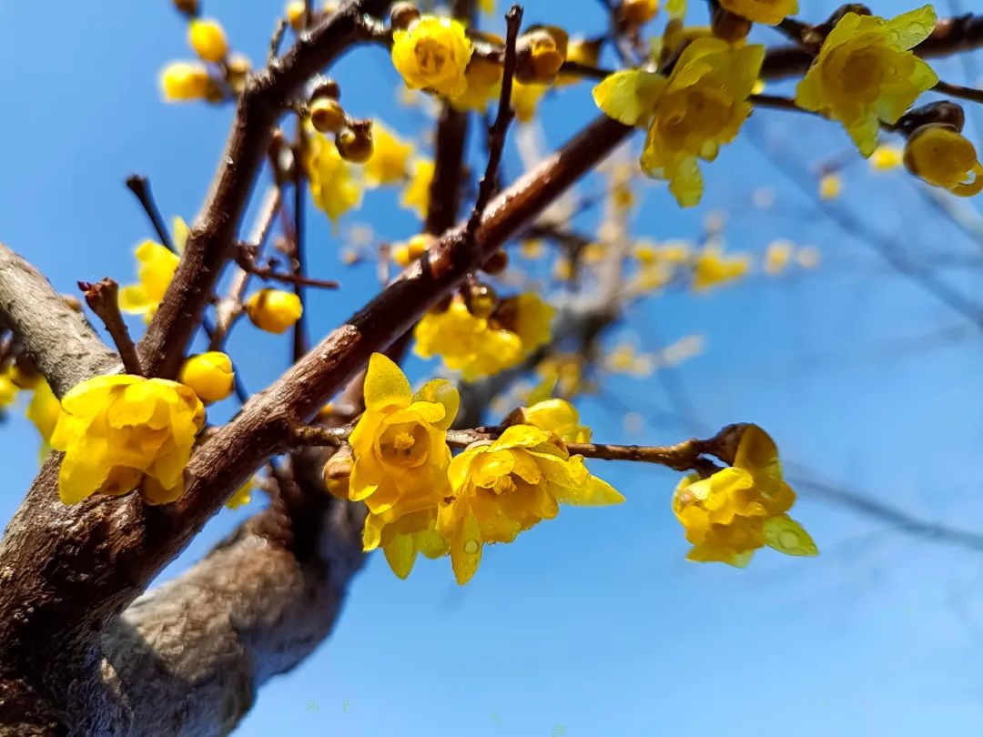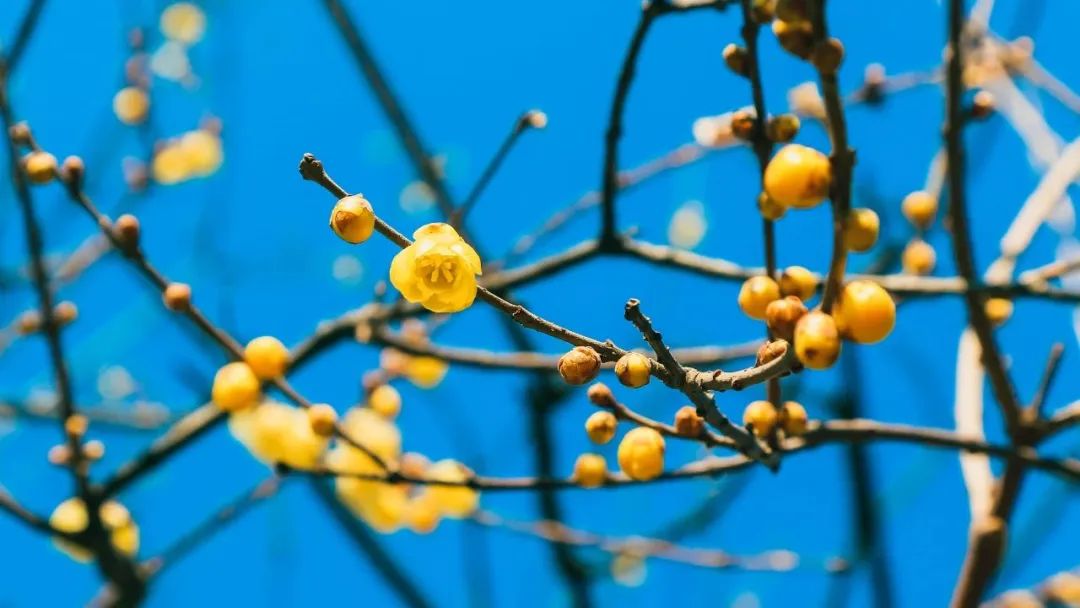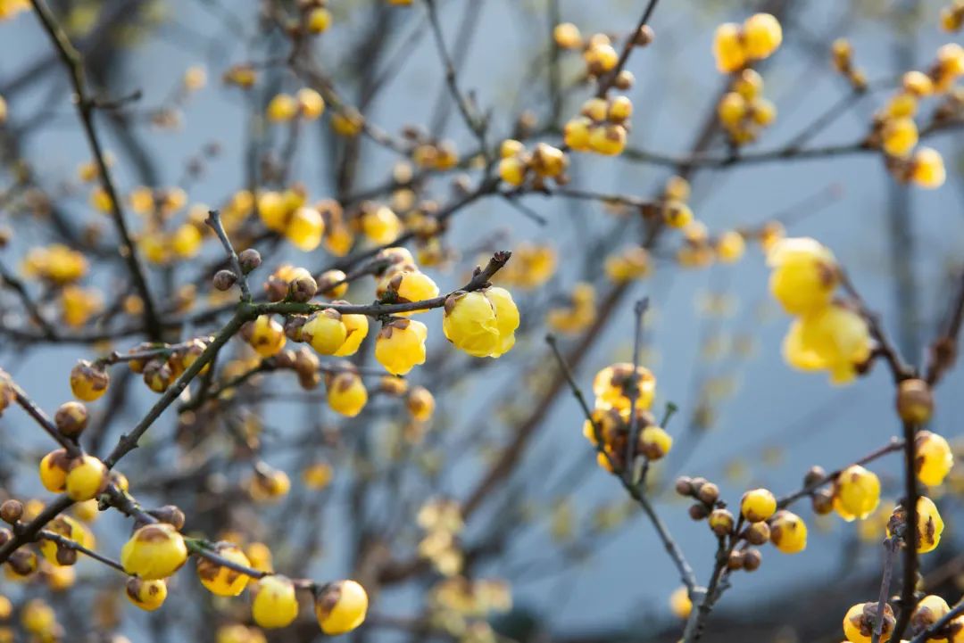 除了以上几个地方,毓璜顶公园、烟台山、烟台植物园等地都是欣赏蜡梅的好去处,在蓝天的衬托下,一朵朵蜡黄色的小花格外醒目。