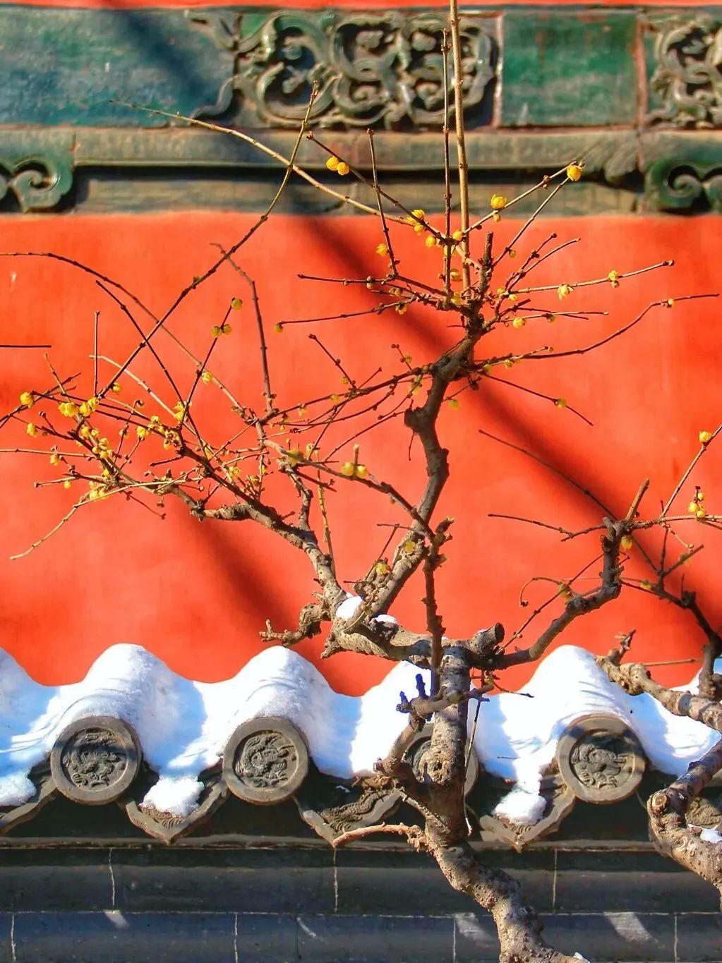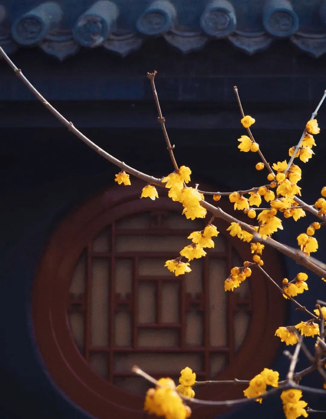 庭院内,幽深迂回,开在院子里的蜡梅,更像是一阙婉约的词,静而幽,清而雅。