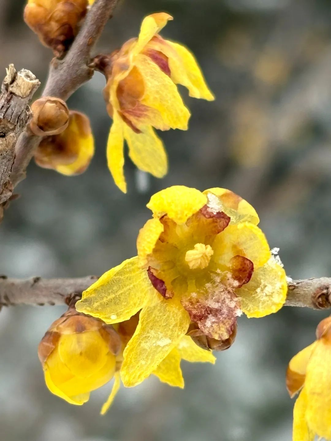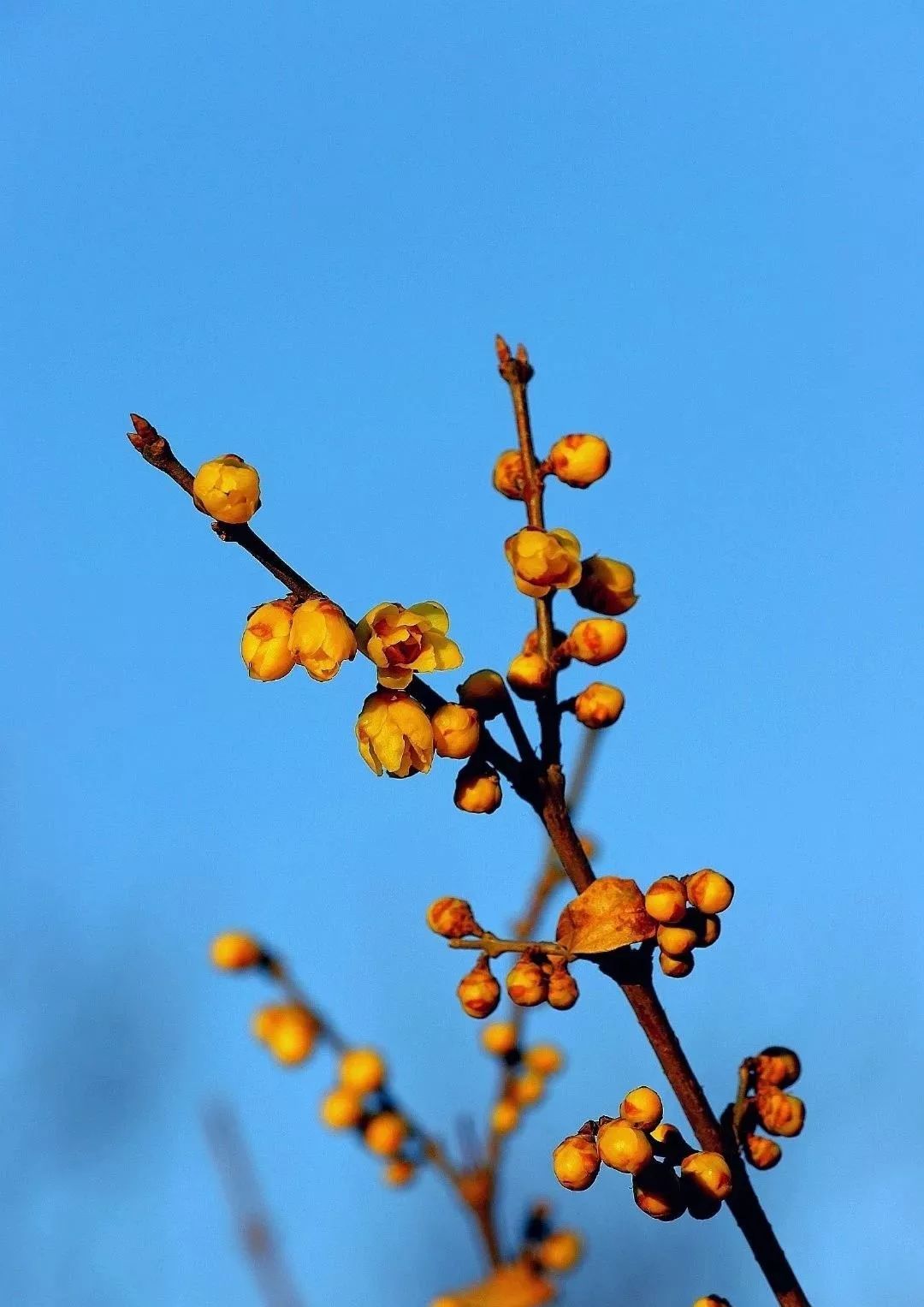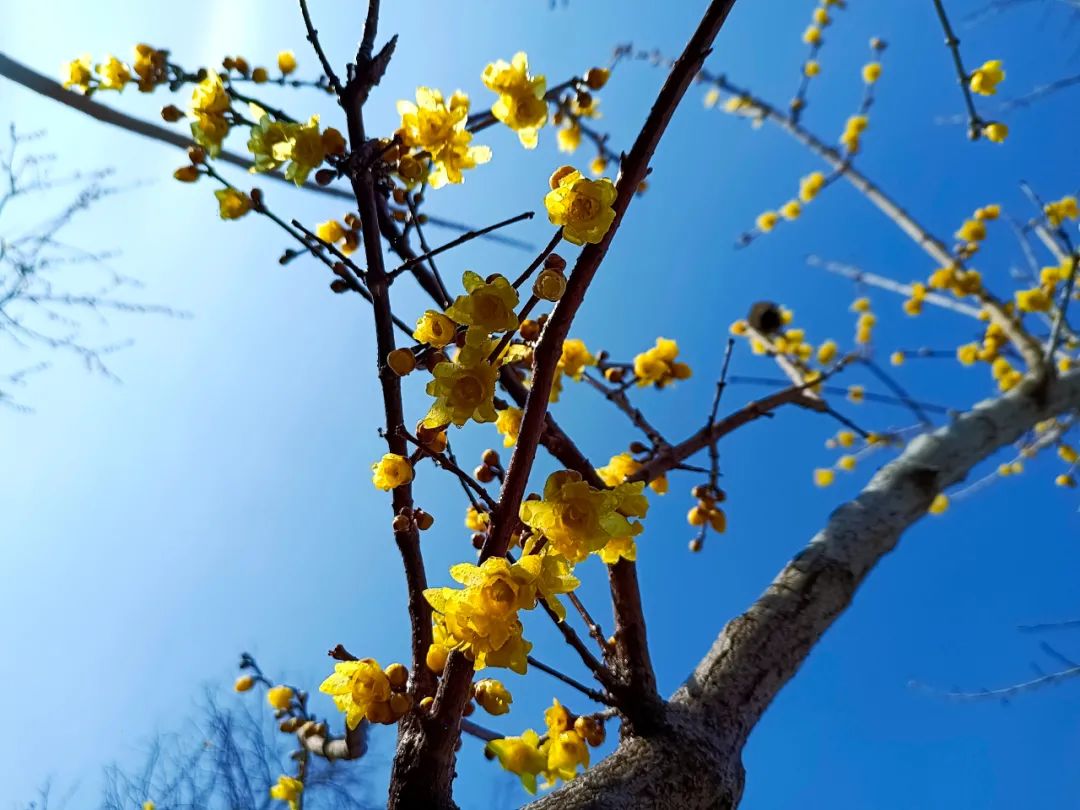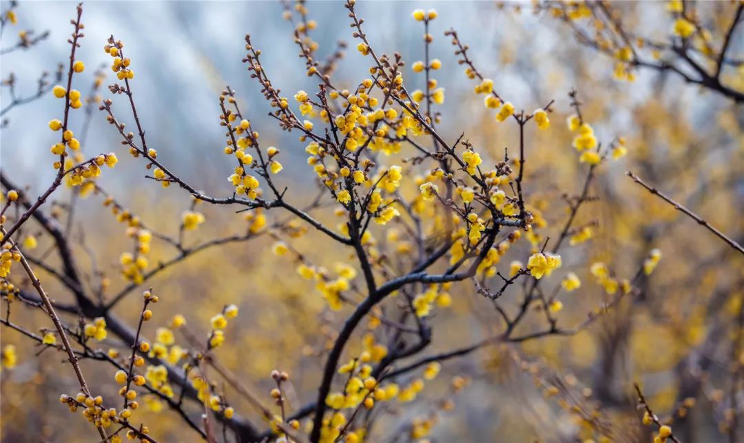 2月初的山东,虽然已经立春,但依旧寒气逼人。所幸寒风中一抹金黄的悄然绽放,为这个季节增添了一份别样的诗意与浪漫。它,便是蜡梅花。