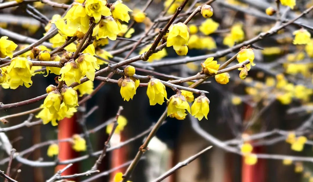 青岛的海云庵里,一簇簇金黄的蜡梅已经盛放,为依旧寒冷的初春增添一份生机。