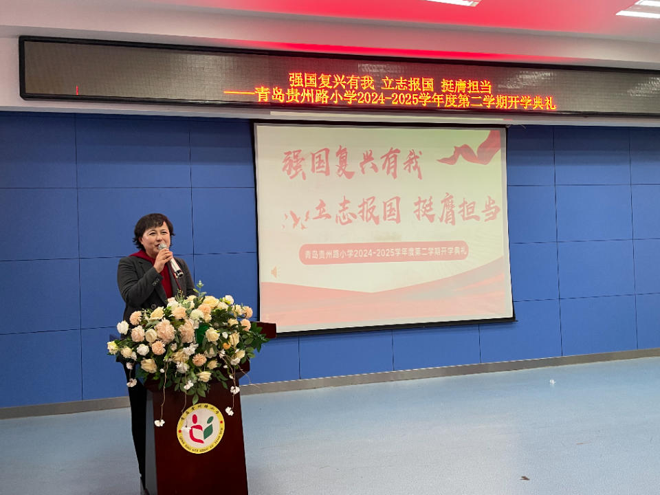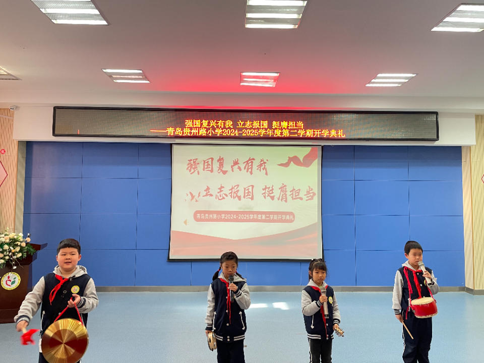 踏着春天的脚步,迎着和煦的春风,青岛贵州路小学的阳光少年们相聚在美丽的校园,满怀新的希望,迎来了新的学期,共同进行以“强国复兴有我 立志报国 挺膺担当”为主题的2024-2025学年度第二学期开学典礼,为新学期拉开了序幕。
