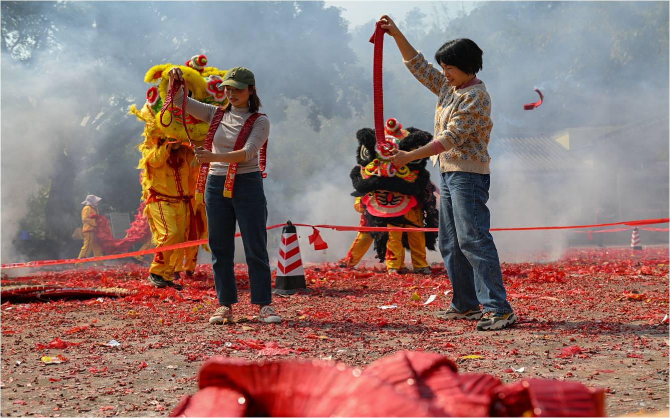 2024年2月12日,大年初三,广西各地开展中国传统文化中一项富有象征意义的民俗活动——炸狮子,祈求来年风调雨顺、驱邪避灾、吉祥好运。