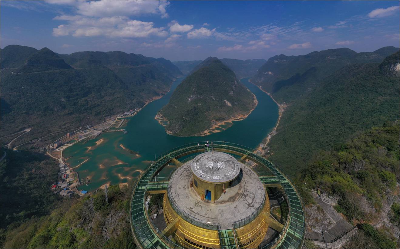 2024年2月20日,广西红水河第一湾,在东兰特色铜鼓平台上可以俯瞰整个红水河第一湾的壮丽风光。