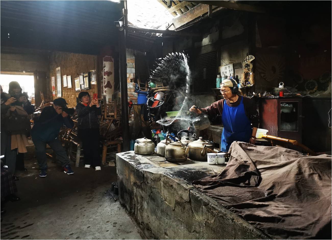 2024年3月4日,成都马市坝街44号百年茶馆,茶馆老板每天都为大家表演绝活。