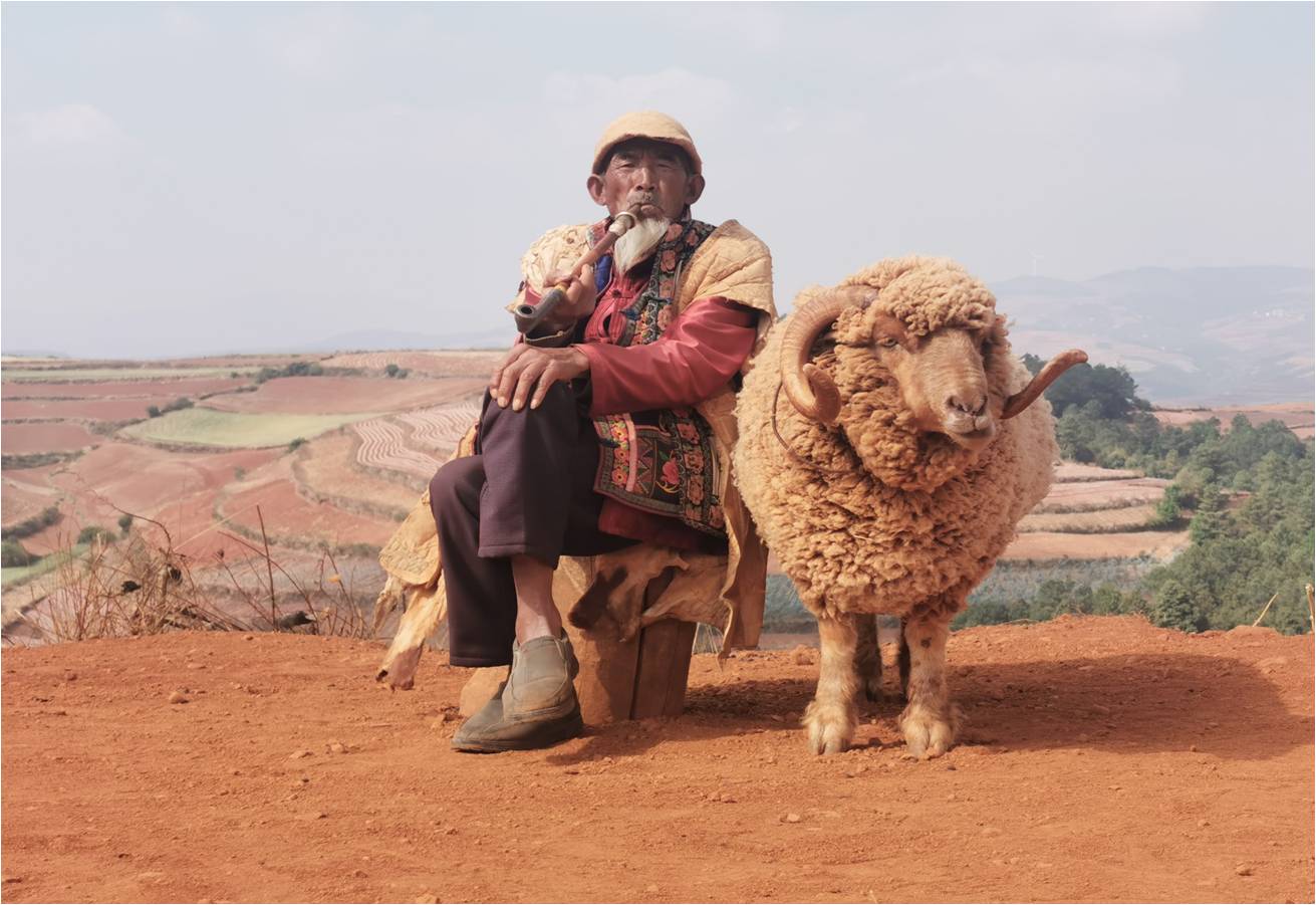 2024年4月18日,云南东川红土地上的彝族牧羊人。