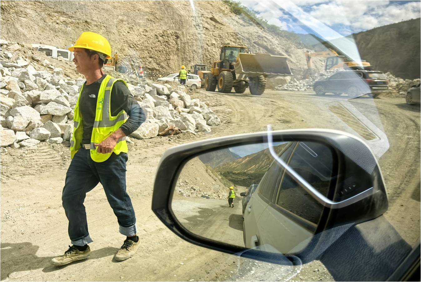 2024年9月28日,在云南省怒江傈僳族自治州贡山独龙族怒族自治县,由云南入藏的丙察察线(219国道)进入最险峻路段上,工人们正在紧张施工修复泥石流毁坏路段。