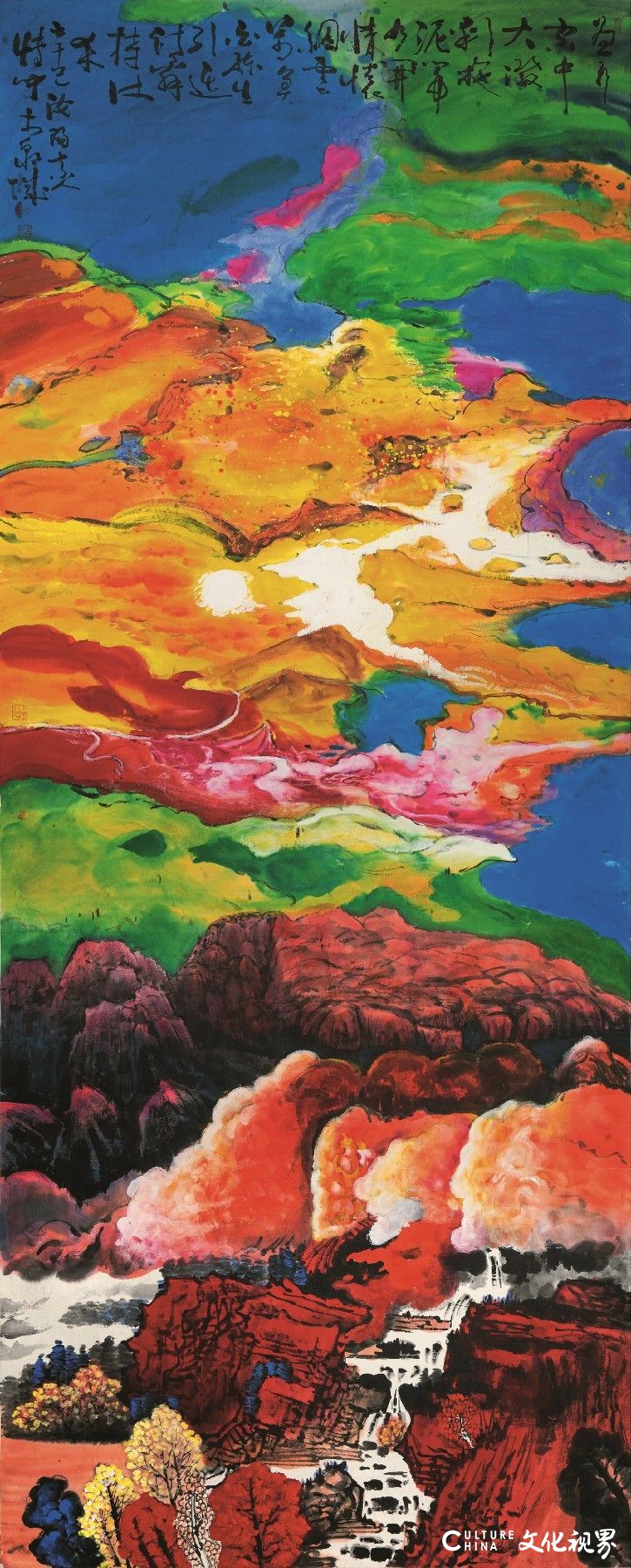 孙博文先生一生致力于中国画的探索和创新,集诗书画印于一身。作品无论是巨幅大构,还是斗方小品,均笔墨雄健,气势磅礴;画面率真自由,流光溢彩;特别是晚年创作了大量鸿篇巨制,尺幅之大,数量之多,完全突破了正常的观看路径和思维模式;题材之丰富,用色之绚烂,又完全颠覆了中国山水画的历史积淀和传统概念。孙博文先生的艺术成果是很特殊的,他对中国画大写意传统的发展做出了突出贡献。