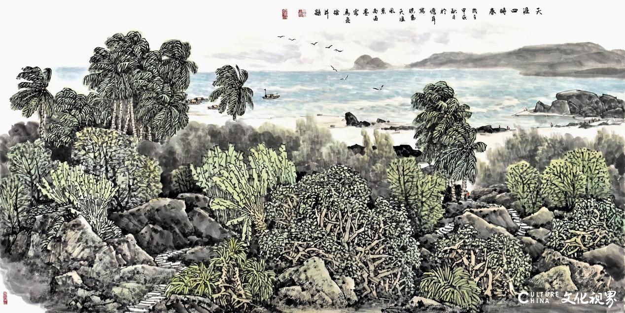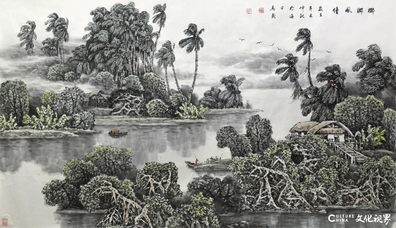 2021年11月,为海南省委绘制了巨幅国画《南国风骨》和《椰乡风情》。