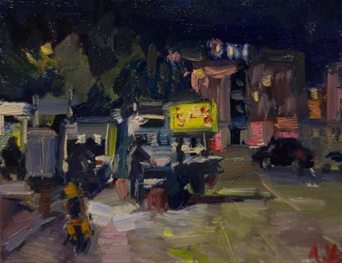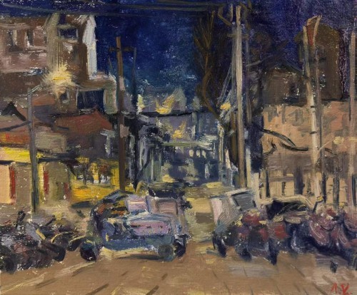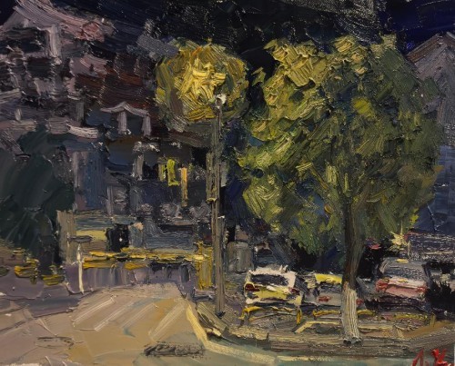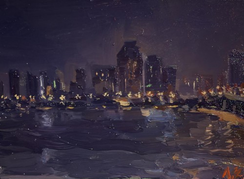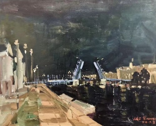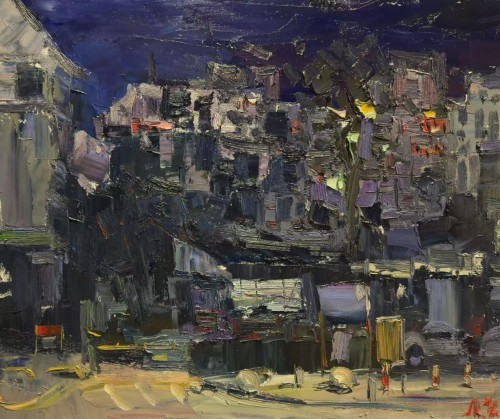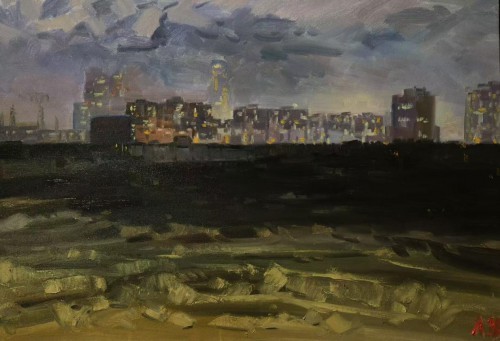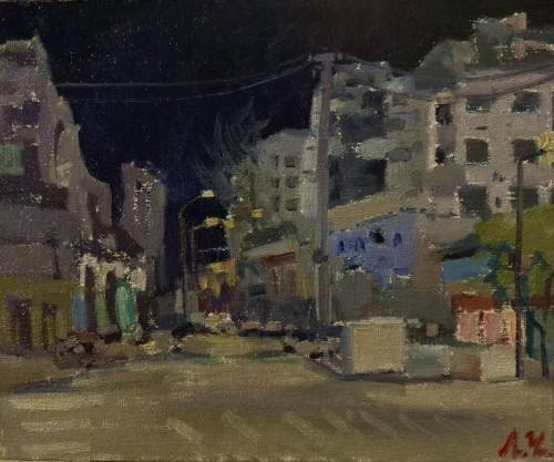 廖正定油画夜景写生作品欣赏