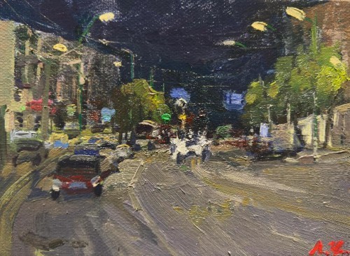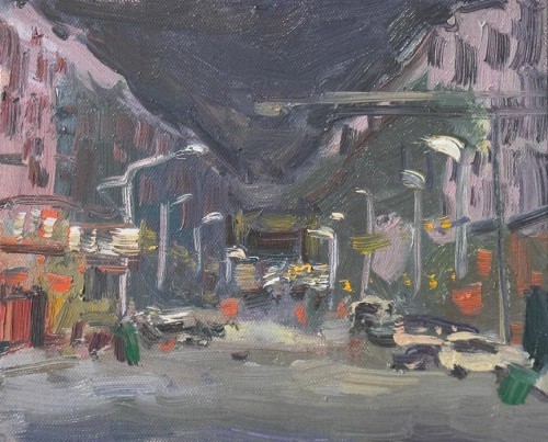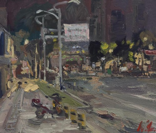 廖正定·油画夜景写生丨捕捉光线的独特流动感,描绘城市街巷烟火里的诗意