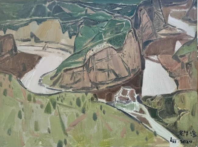 其作品多聚焦于中国北方及西部地区的自然与人文景观,他到太行山、老牛湾、呼伦贝尔草原等地写生,用细腻的笔触和丰富的色彩层次,捕捉不同地域的独特风貌,展现太行山的雄浑与苍劲、草原的辽阔与静谧,对本土文化的关注使他的作品具有浓厚的地方特色和文化底蕴。