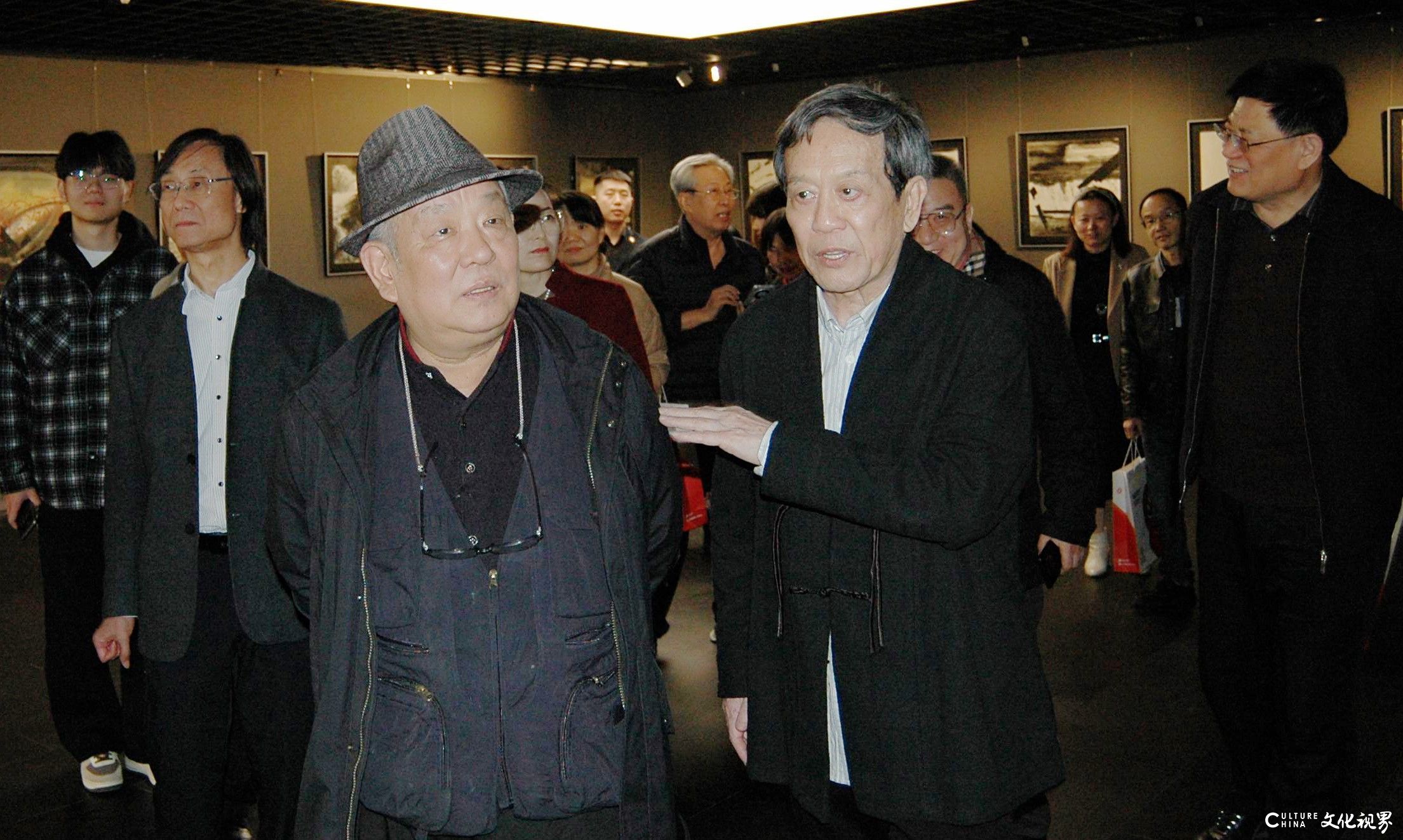 山东省政协科教卫体委员会副主任、山东省文联原党组书记王世农,山东省文联原副主席、山东美术家协会名誉主席、山东艺术学院原院长张志民,山东大学原党委副书记、山东老年学与老年医学学会会长方宏建,山东美协原副主席陈全胜,中国书协第八届副主席、楷书委员会主任、山东省书法家协会名誉主席顾亚龙,山东省博物馆副书记卢朝晖,济南市政协原秘书长、一级巡视员韩明东,济南市政协社教卫体和法制委员会原主任、一级巡视员、市政协书画院秘书长张岩,济南市文联原党组书记、济南市文艺评论家协会原主席刘溪,济南铁路局原党委副书记王辉,中国美协漫画艺委会名誉主任、山东省漫画家协会主席陈黎青,中国国家画院专职画家胡应康,山东省政协常委、山东工艺美术学会副理事长、山东壁画艺术研究院副院长刘青砚,山东省政协常委、国家一级作曲、指挥、山东演艺集团爱乐乐团艺术总监李百华,山东文博书画研究会会长晏建萍,香港卫视书画研究院院长方爱琴,山东大学艺术学院教授、山东当代花鸟画院副院长、山东旅游书画院副院长张乐毅,山东师范大学美术学院教授、法国巴黎高等学院特聘教授刘宏,济南大学美术学院教授、原院长李如,中国工艺美术学会纤维艺术委员会常务委员、山东省美术馆协会执行秘书长、山东美术馆学术研究部主任郭振宇,山东女书画家协会原副主席弭金冬,凪艺术空间创始人、山东银座美术馆原馆长田俊,山东大学济南校友会会长、山东华天科技集团股份公司董事长李宇兵,济南市工商联副主席、大卫国际设计院董事长、著名艺术品收藏家申作伟,浙商银行济南天桥支行行长滕宁,浙商银行济南分行私人银行部副总经理张君,山东书协原副主席李向东,山东省漫画家协会秘书长、山东工艺美术学院教授宋晓军,山东省美协副秘书长董锐虎等艺术界名家、文化学者及各界嘉宾百余人齐聚一堂,共同参与见证了这场跨越时空的艺术盛宴。