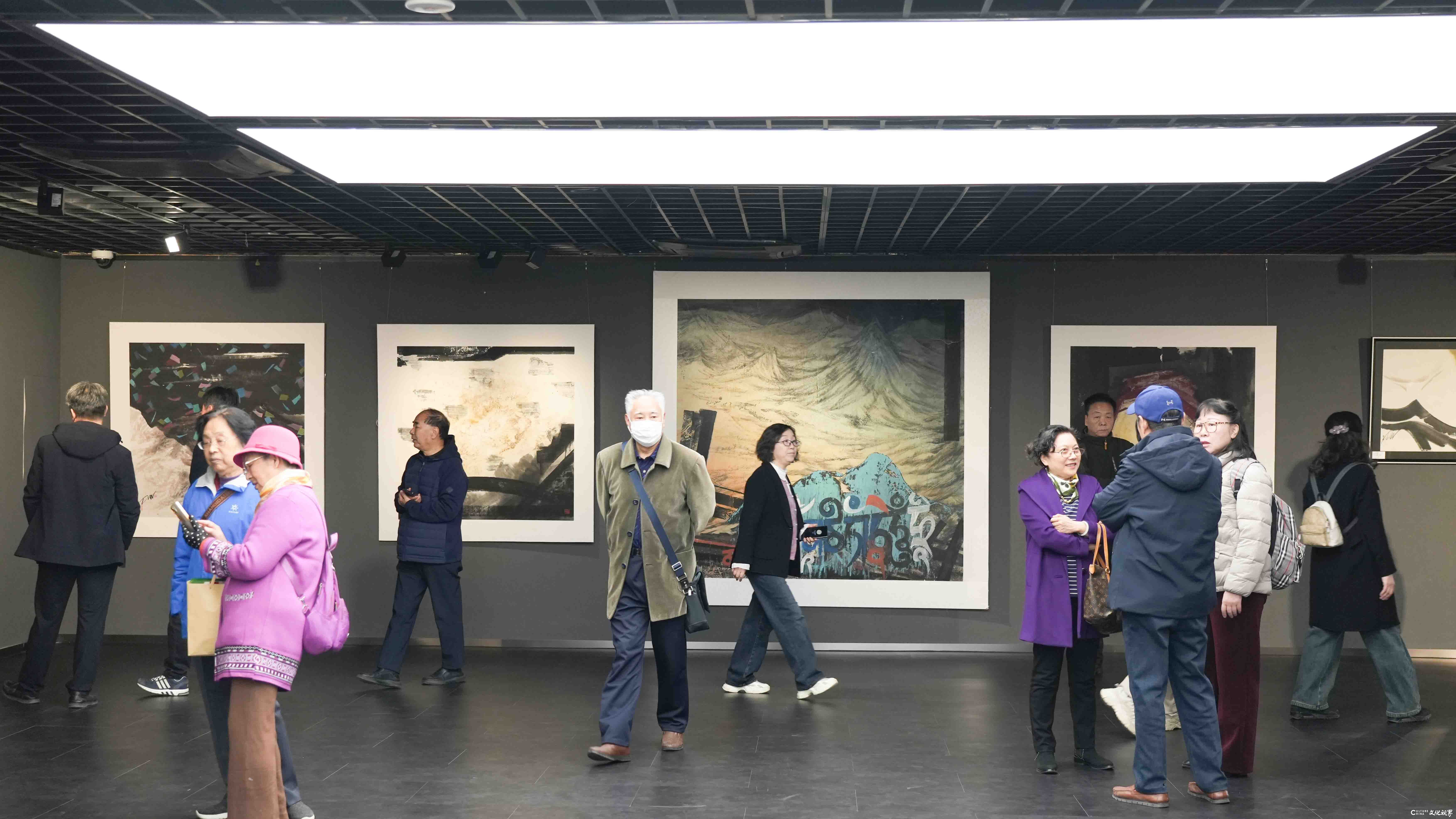 展厅内,观众时而驻足于丈二匹的《一山飞峙大江边》前惊叹其气象万千,时而在《一片清凉世界》荷花长卷前屏息凝神,在西藏写生创作展厅感慨于超现代派的视觉冲击,更有多位书法、篆刻爱好者在书法和印章作品前驻足观摩其笔法、刀法的精妙变化。