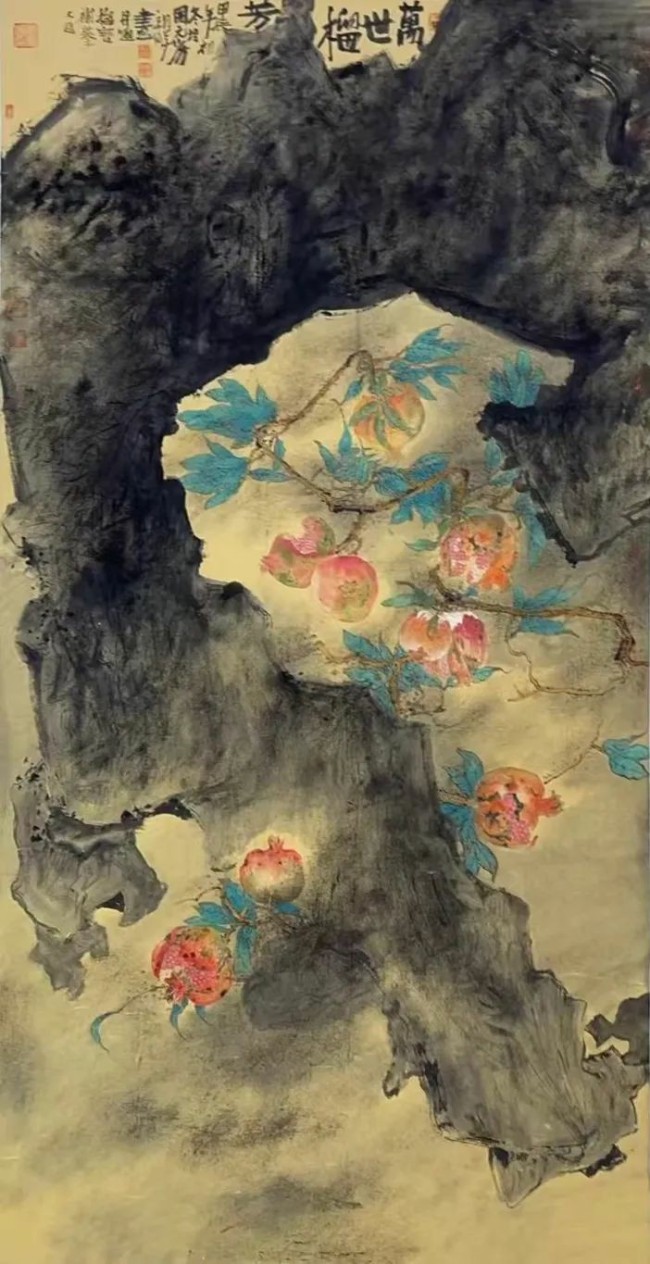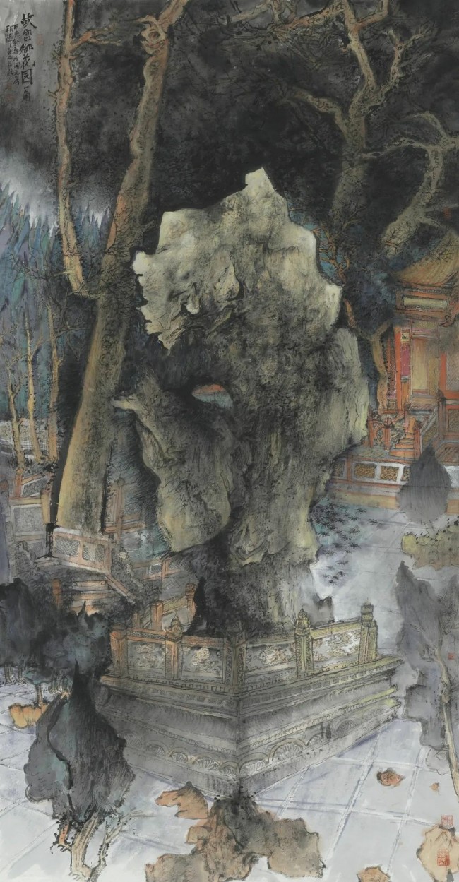 《故宫御花园一角》180×90cm 纸本设色 2024年