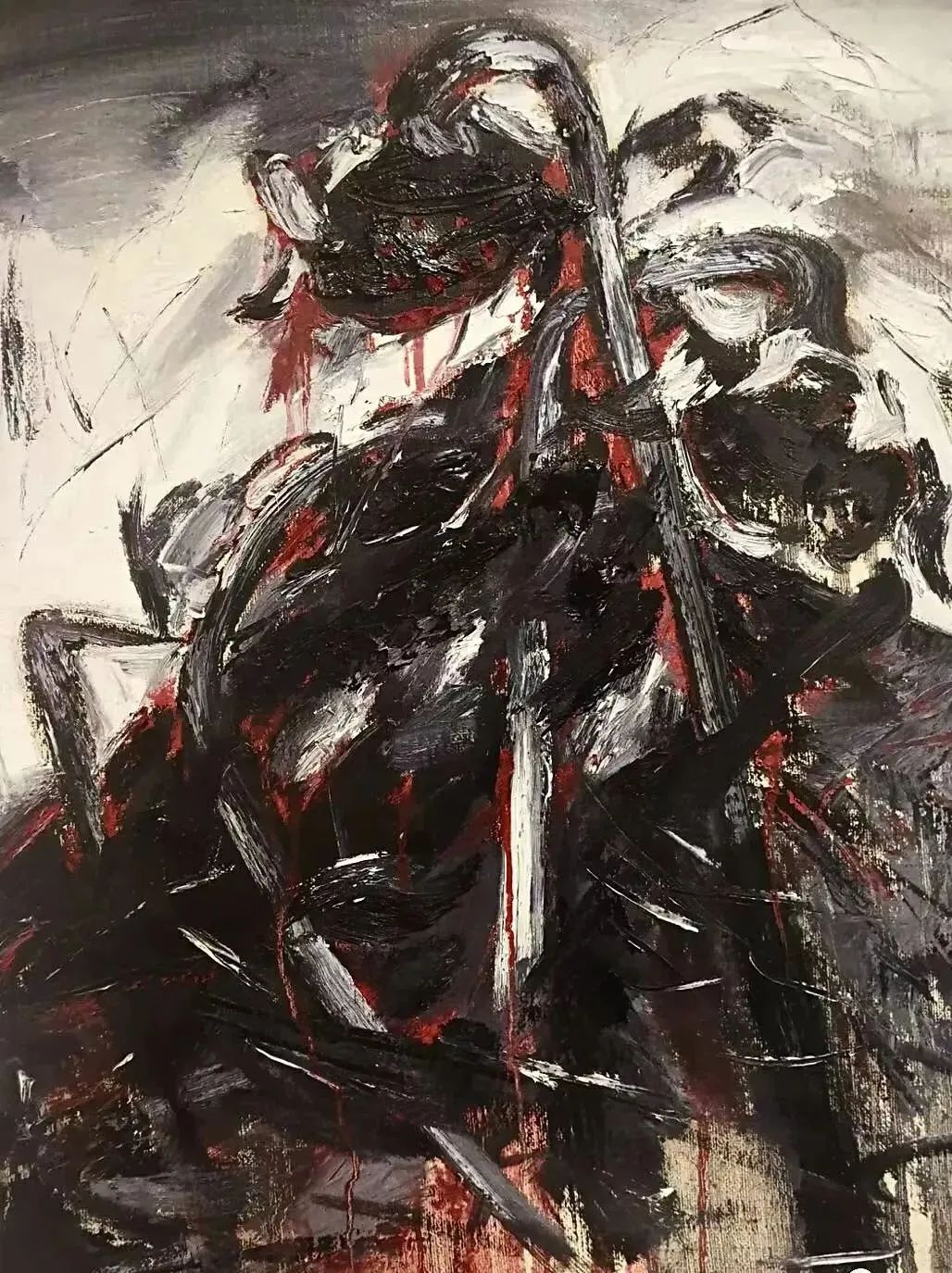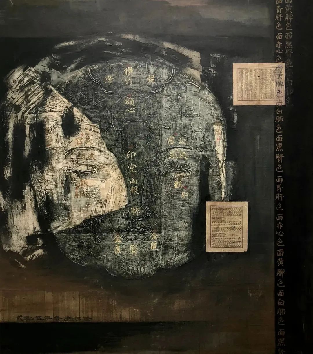 《望诊-面黑肾色》180cmx200cm 布面综合材料 2005