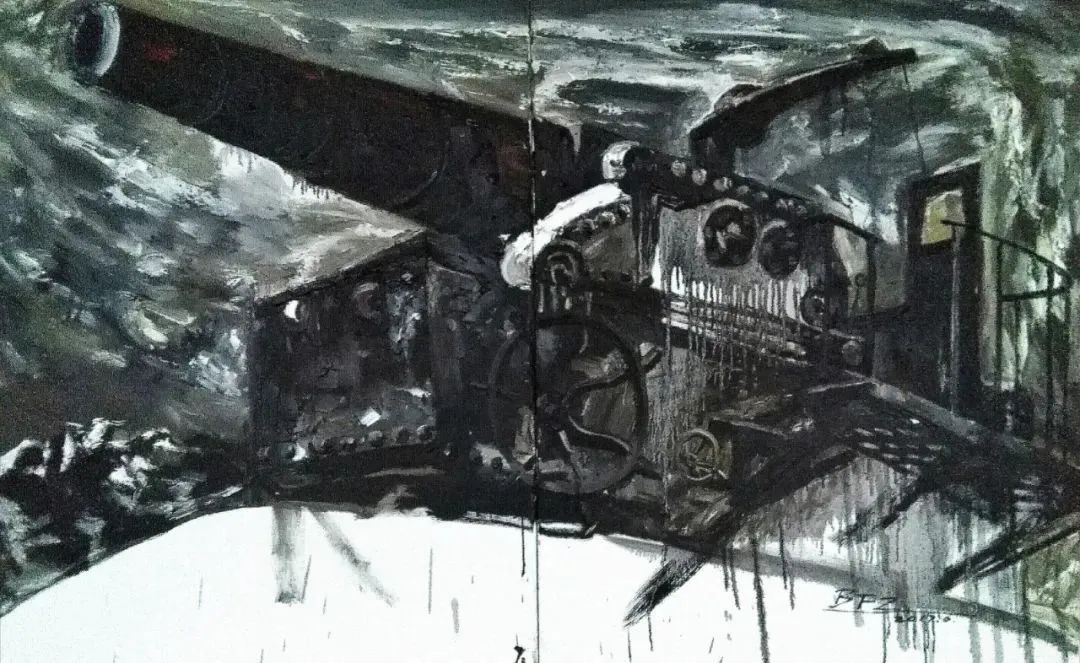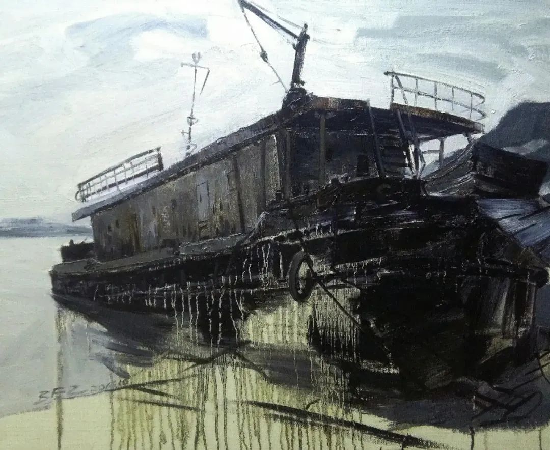 《梭鱼台修船厂废弃的铁船》80cmx100cm 布面油画 2016