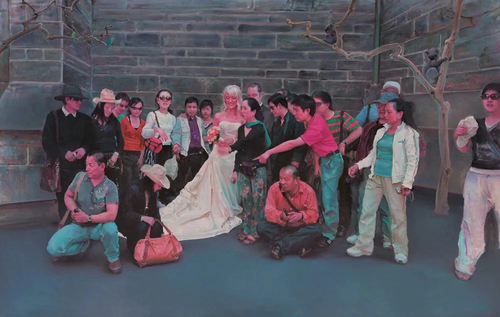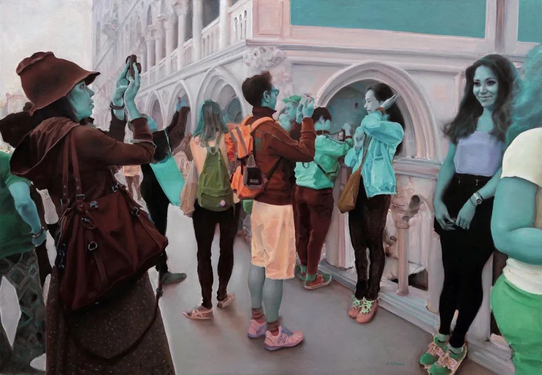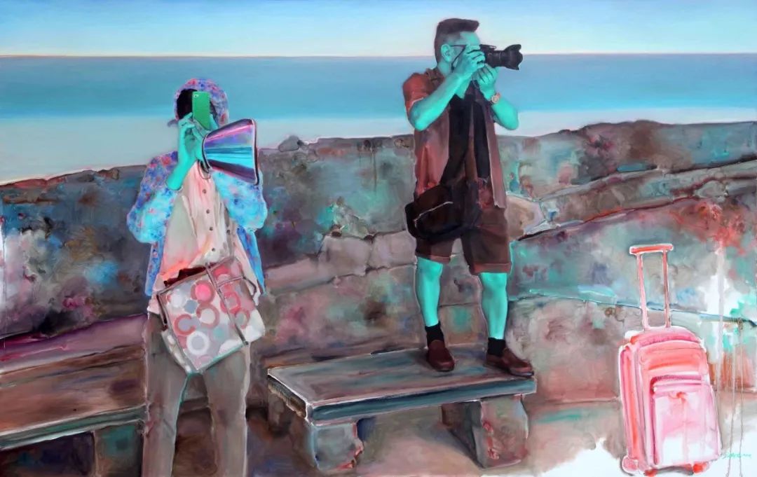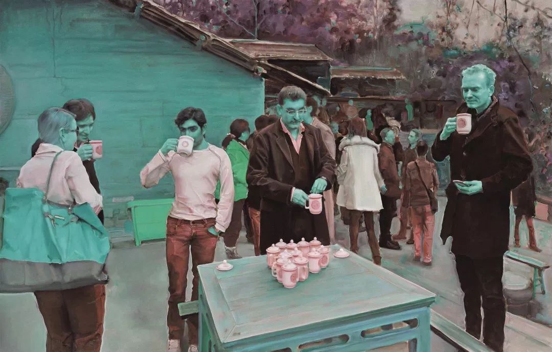游观系列的突破在于其“间离效应”。庞茂琨通过消解传统油画技法,迫使观众以陌生化视角重新审视日常经验。