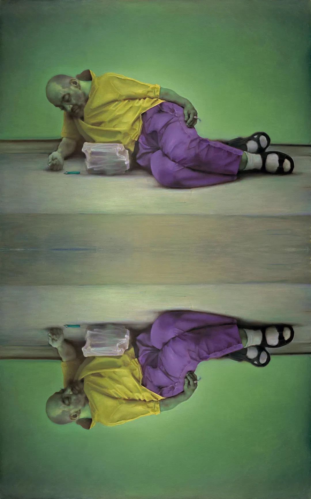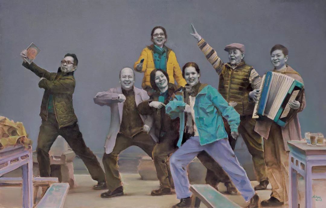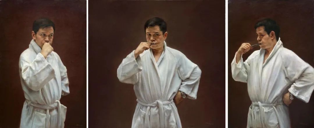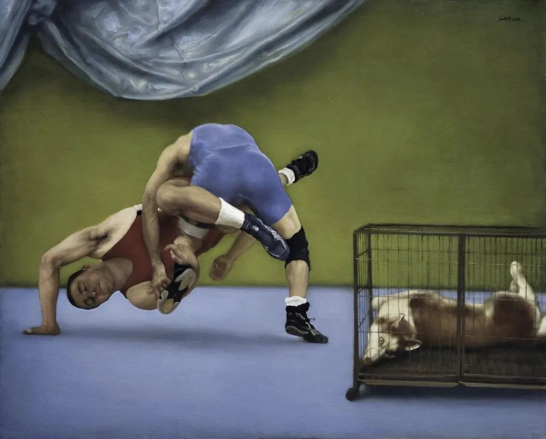 游观系列的突破在于其“间离效应”。庞茂琨通过消解传统油画技法,迫使观众以陌生化视角重新审视日常经验。
