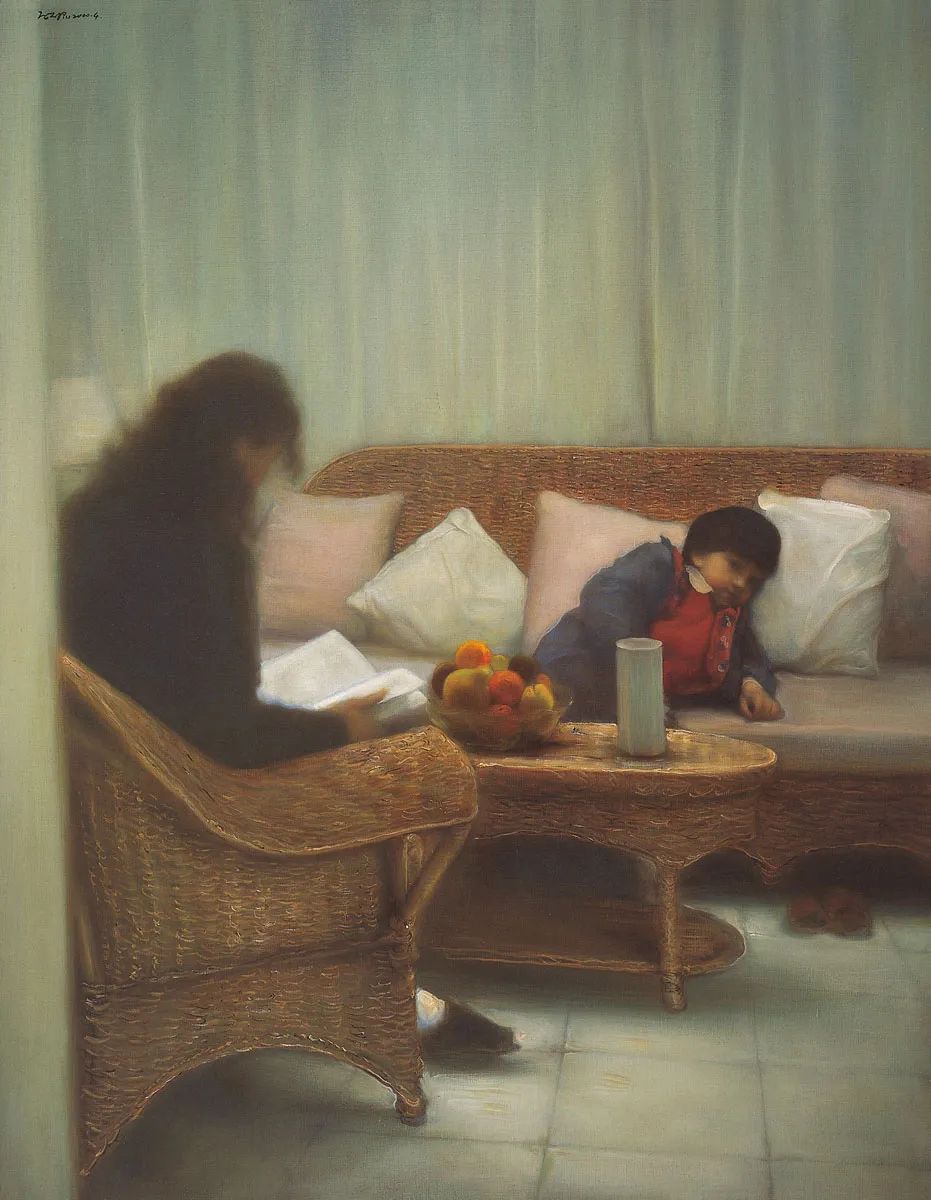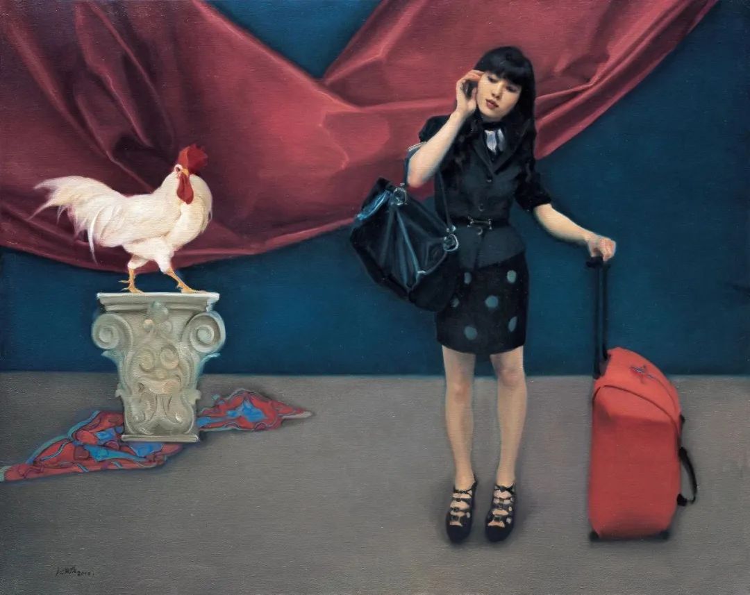 在中国当代油画领域,庞茂琨是一位始终以冷静的观察者和思想者姿态介入现实的艺术家。他的创作从早期的古典写实,逐渐转向对现代人生存境遇进行哲学性探讨,他通过“舞台系列”、“游观系列”、“镜像系列”等作品,构建了一个充满隐喻的视觉剧场。在这些系列作品中,庞茂琨以细腻的笔触和克制的色彩,揭示了当代人精神世界的异化、自我认知的困境以及现实与虚拟交织的荒诞性。