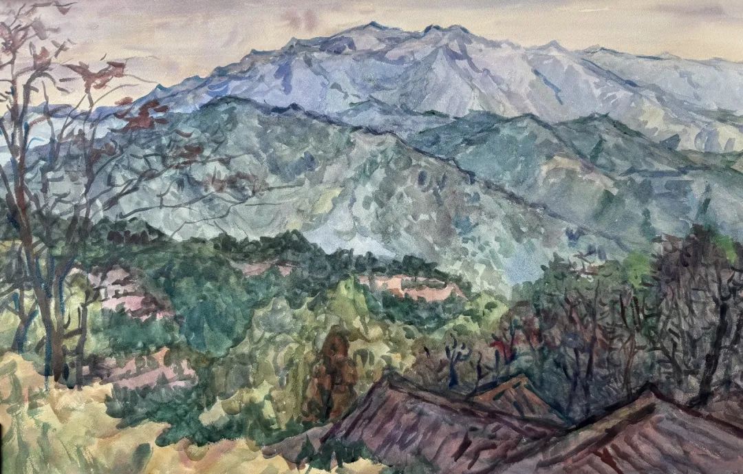 骆献跃 青山叠翠 76X114cm 水彩 2024年
