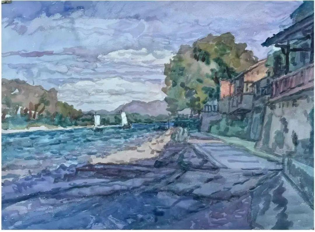 骆献跃 江边 23X31cm 水彩 2024年