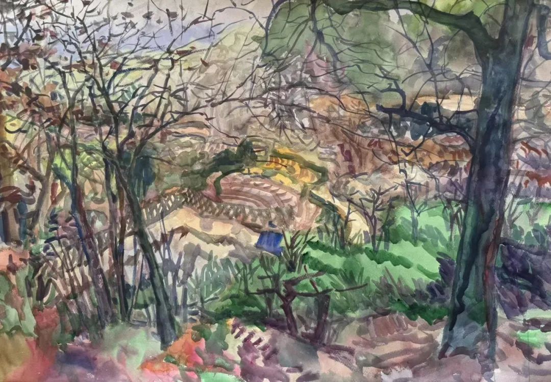 骆献跃 房东家的小农场 76X114cm 水彩 2024年