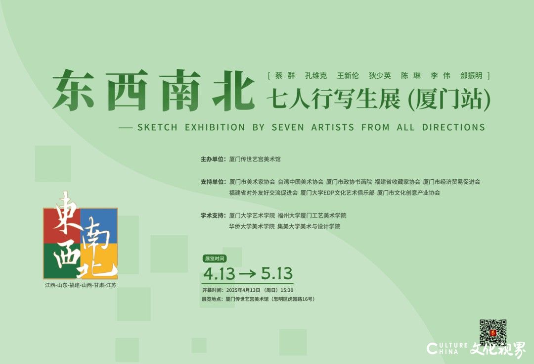 “东西南北七人行写生展” 由蔡群发起,孔维克、王新伦、狄少英、李伟、陈琳、郐振明七位画家共同举办,在东西南北不同城市开启巡展,旨在为各地画坛增一束光、为巡展城市添一片彩。厦门站将于4月13日开幕,期待与大家共享、交流、互鉴,共同推动现实主义新水墨人物画的繁荣发展!