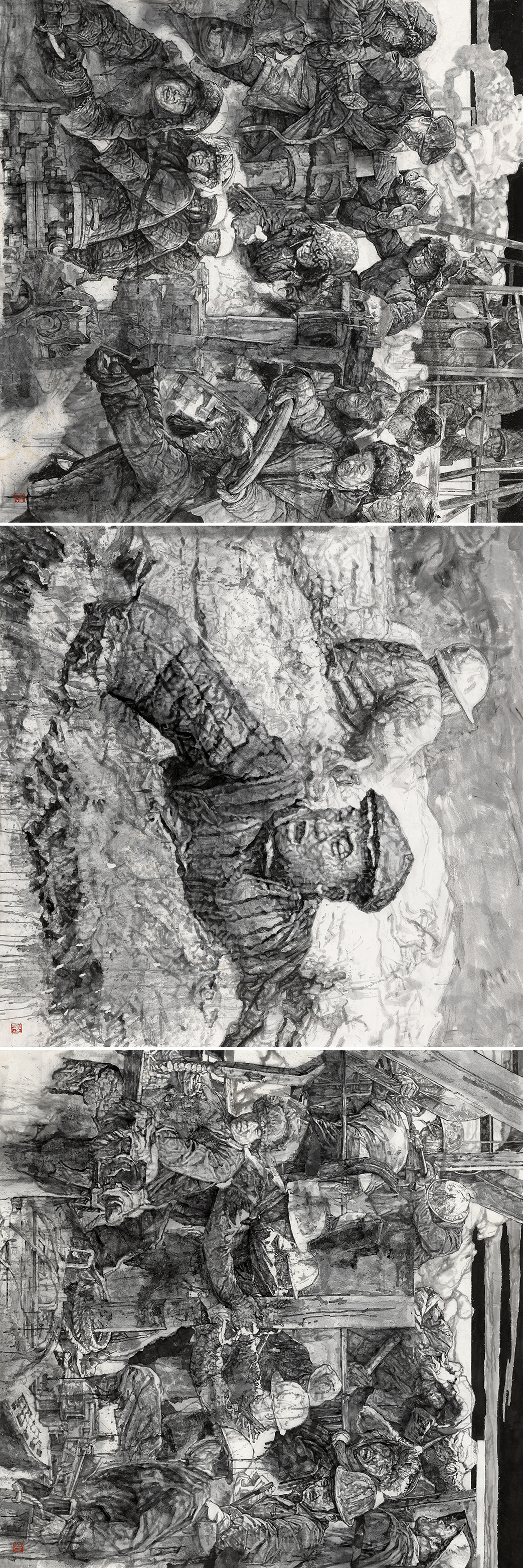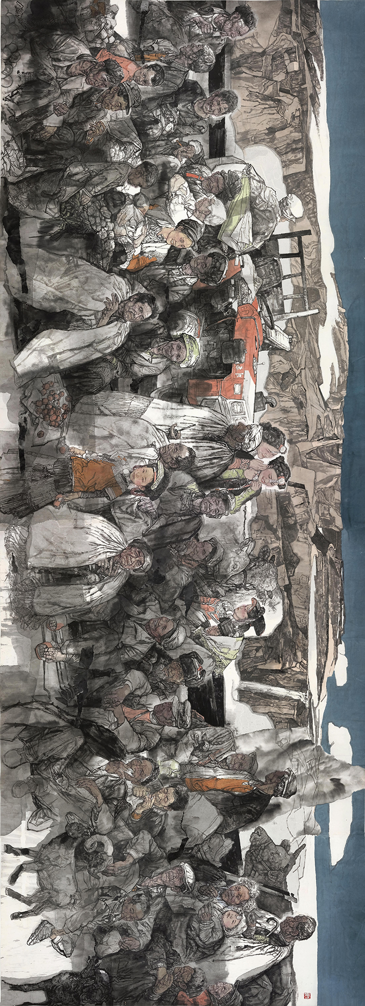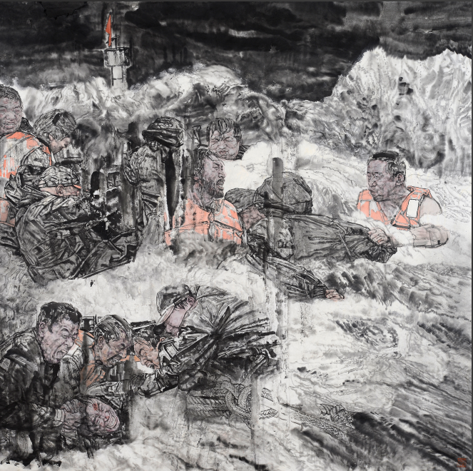 《众志成城——98抗洪》,215cm×650cm,2022年