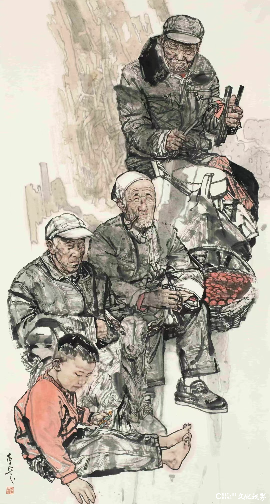 石涛说“笔墨当写时代”,当代人记当代之事,扬当代之精神。描绘当下普通人生命状态,记录小人物生活状态,是李宽追求不懈的绘画主题。他说:“我目前的作品题材大都是反映生存在土地上辛苦劳作的农民,对鲜活生动的人物形象和画面出现的生活气息尤为迷恋。”“对当下农民这个群体生存状态、精神面貌的关注,是我绘画创作的原动力。”