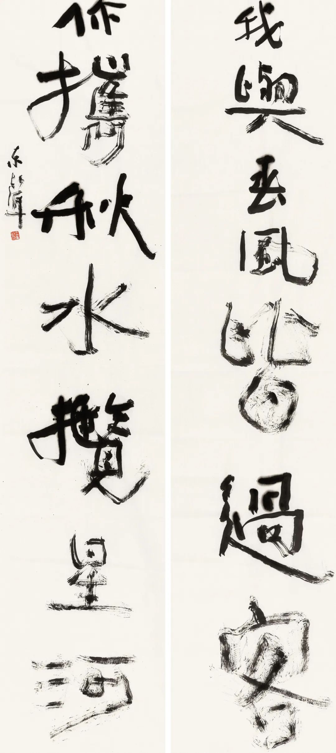 王东声,《我与你携七言联》,纸本水墨,233cm×52.5cm×2,2024年