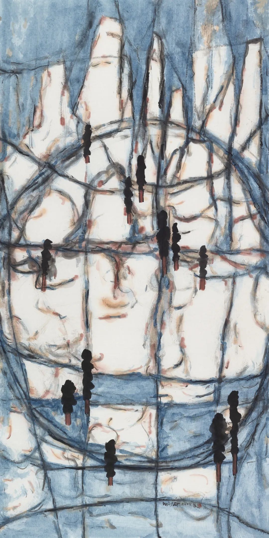 王东声,《关于九峰雪霁的演绎之五》,纸本设色,138cm×68cm,2024年