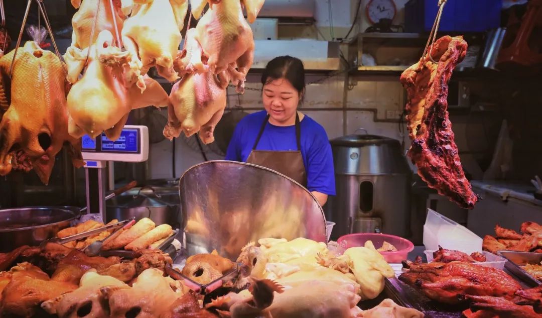 同样来翻身快20年,生了5个儿子的饭姐,被整个翻身菜市场的人夸很幸福。她那挂满了各种潮汕卤鹅和白切鸡鸭的卤水店里,如今不缺男丁的帮忙。偶尔午休时间,她会火急火燎地扔下店里生意,去市场角落挨个把打游戏的儿子抓回去上学,再笑呵呵地回到店里用夹杂着潮州口音的普通话跟客人推销,啊呀家里孩子不争气了,今天的隆江猪脚卤得特别软烂您要不带两个,再给你们送点鸭血啦!