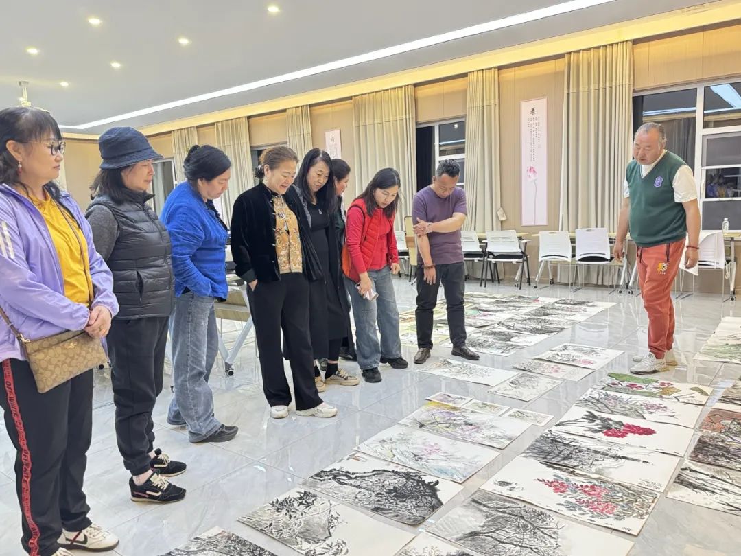 不同于传统写生的“走马观花”,马胜利采用“沉浸式解构教学法”:从观察角度的选择,到线条疏密的节奏,再到色彩冷暖的情绪表达,他都亲自拆解示范。学员们感慨,这种“手把手拆解平凡”的指导,让他们仿佛获得了一双全新的眼睛——能从碎石缝隙里的青苔中看见生命张力,在飘落枯叶的脉络里读懂时光叙事。