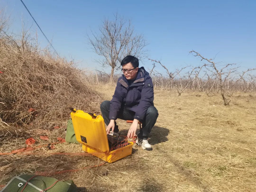 在胶东金矿的成矿区域,省物化探院承担的“胶东金矿深部协同三维精细探测技术研究及找矿预测”项目组技术人员正在紧锣密鼓的开展野外物探勘查工作。