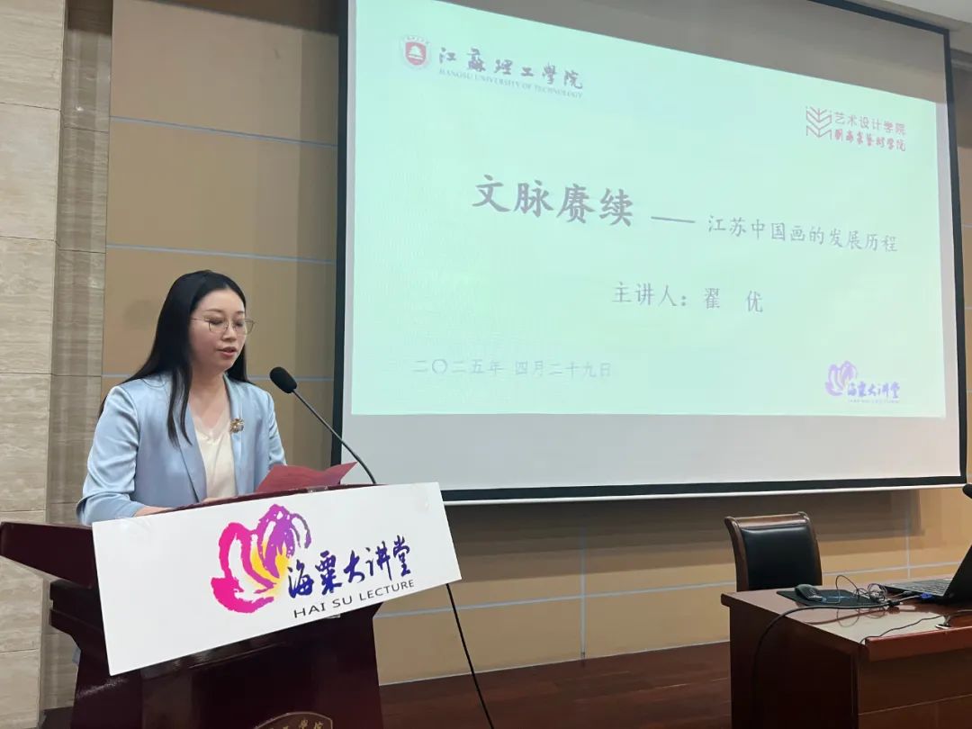 4月29日,翟优应江苏理工学院艺术设计学院(刘海栗艺术学院)之邀重返母校,以一场主题为《文脉赓续—江苏中国画的发展历程》的艺术讲座,为师生们带来了一场精彩纷呈的艺术活动。江苏理工学院党委副书记、校长戴国洪,江苏省委巡视组原副组长、副厅级巡视专员陈东伟,南京工业大学原党委书记王德明,江苏省中国画学会理事长、萨马兰奇全球航海运动基金航海文化艺术中心主席王强,以及江苏理工学院艺术与设计学院(刘海栗艺术学院)党委书记杨文生,党委副书记副院长(主持工作)朱亮亮,党委副书记钟蕾,副院长曹晋、丁奕等领导嘉宾出席活动。活动由副院长丁奕主持。