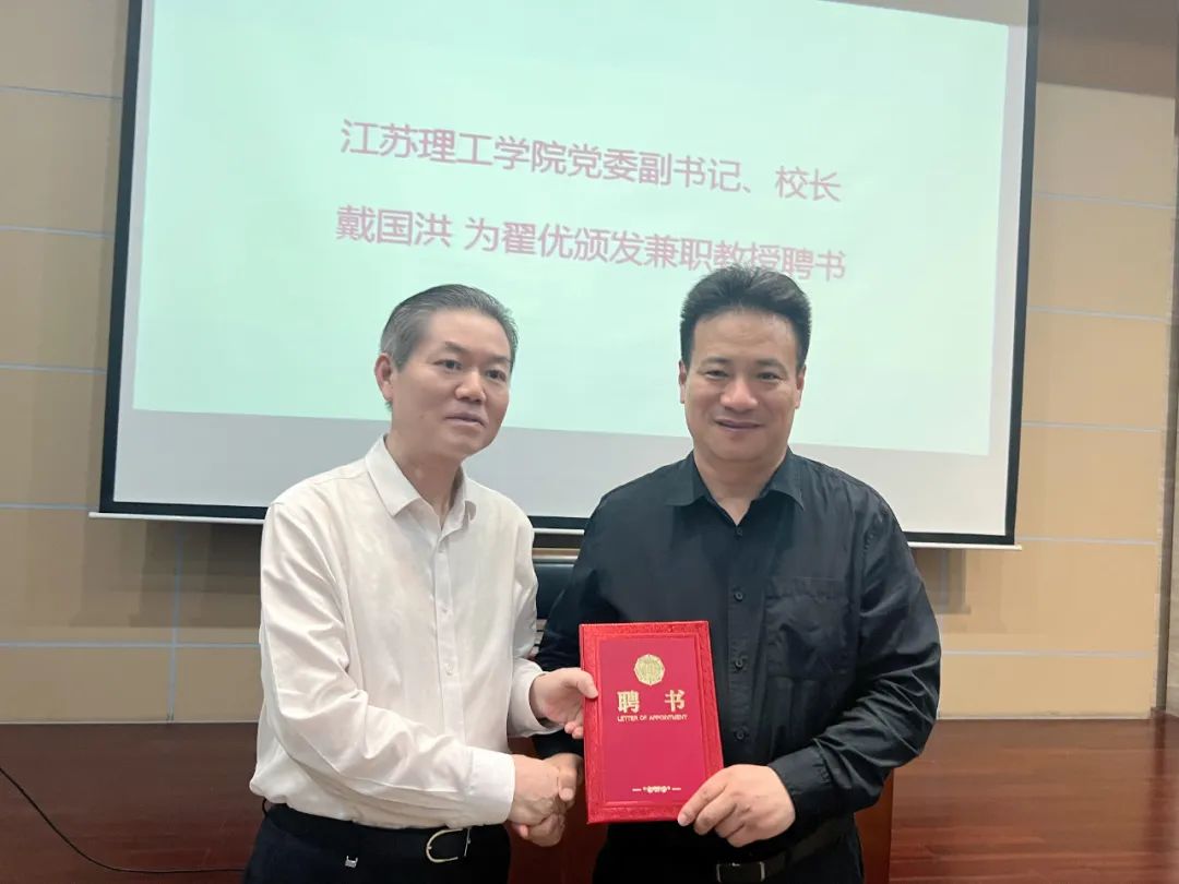 江苏理工学院党委副书记、校长戴国洪为翟优颁发兼职教授聘书