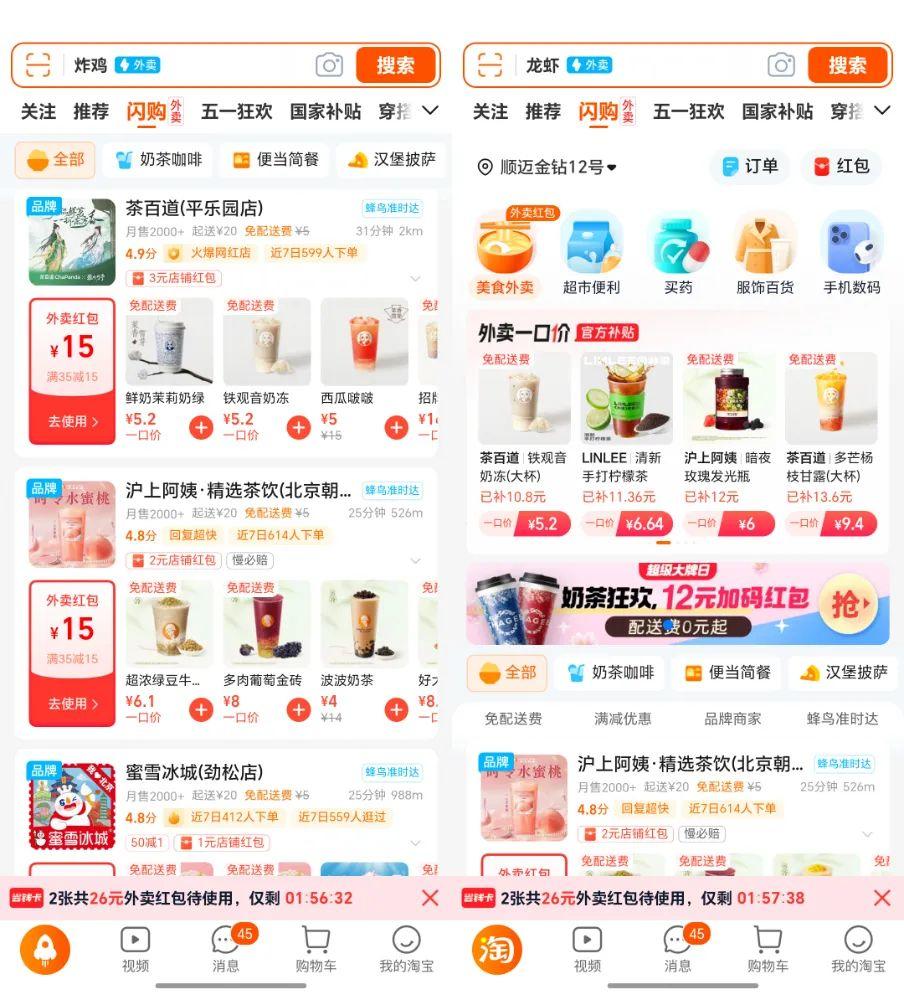 由于消费者及商户积极性超预期,淘宝闪购于5月2日宣布提前4天全量上线,并给全国用户每人每天发放两个大额红包,同时还有品牌商品一口价、免单等长期福利。