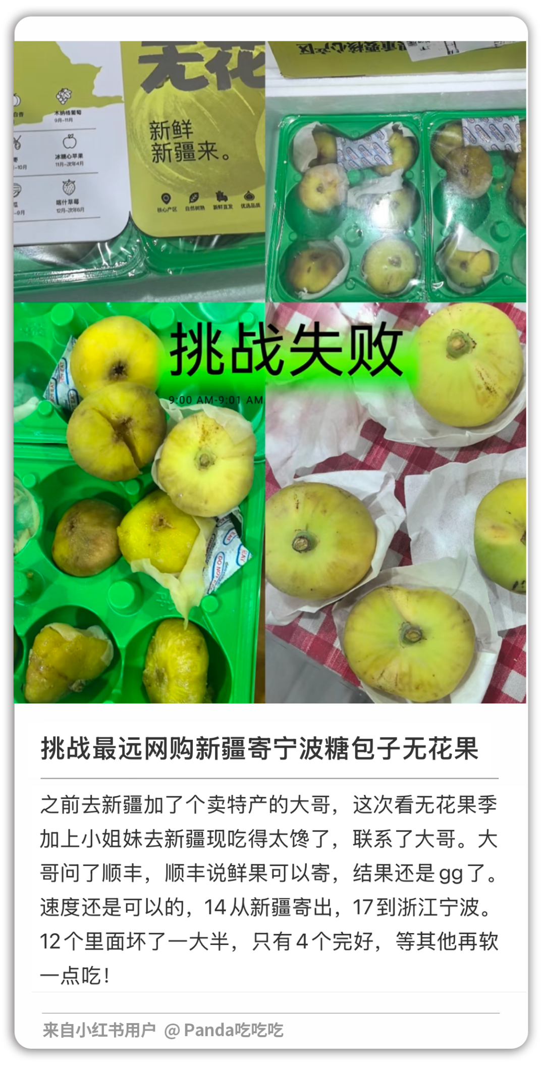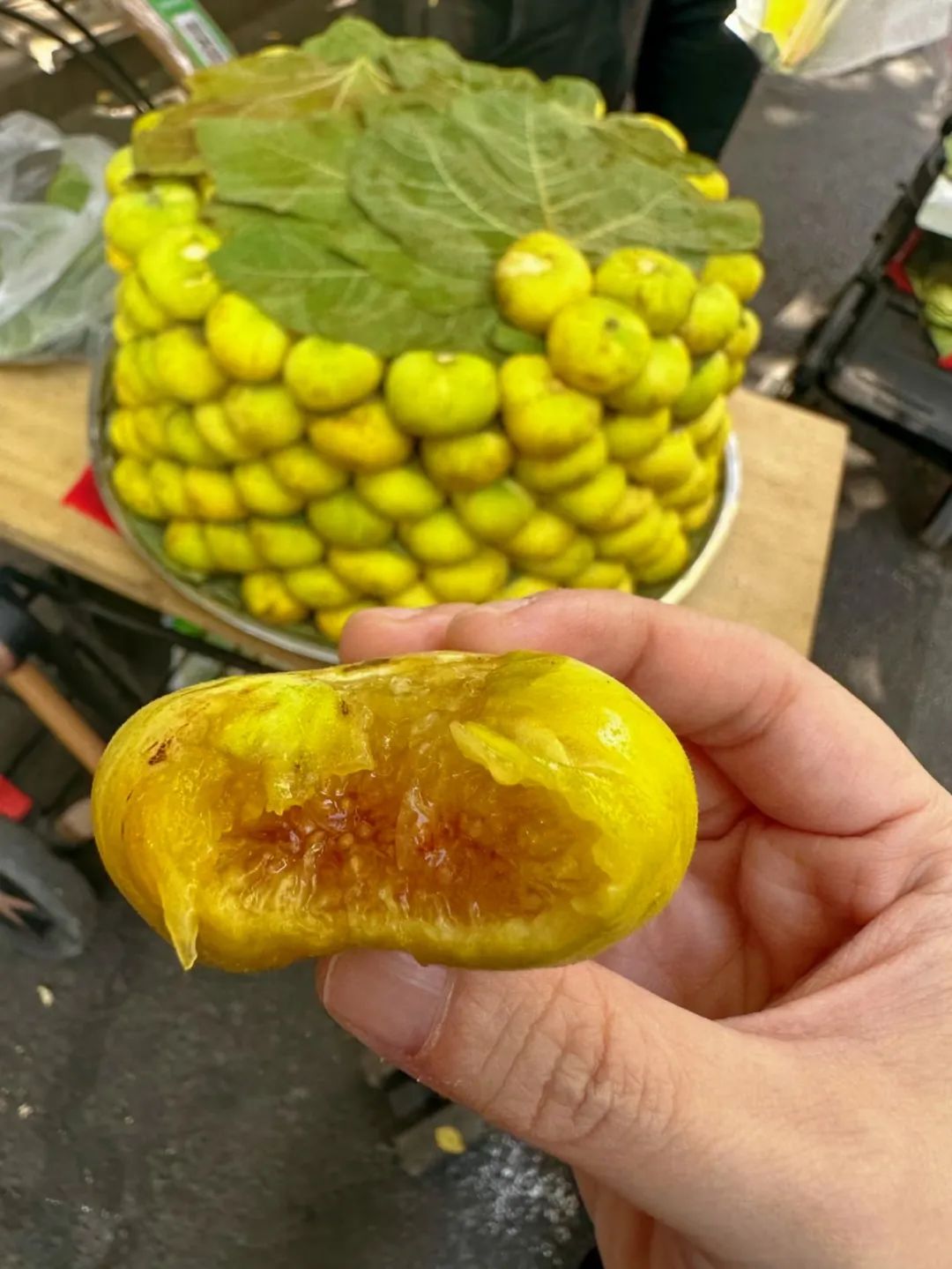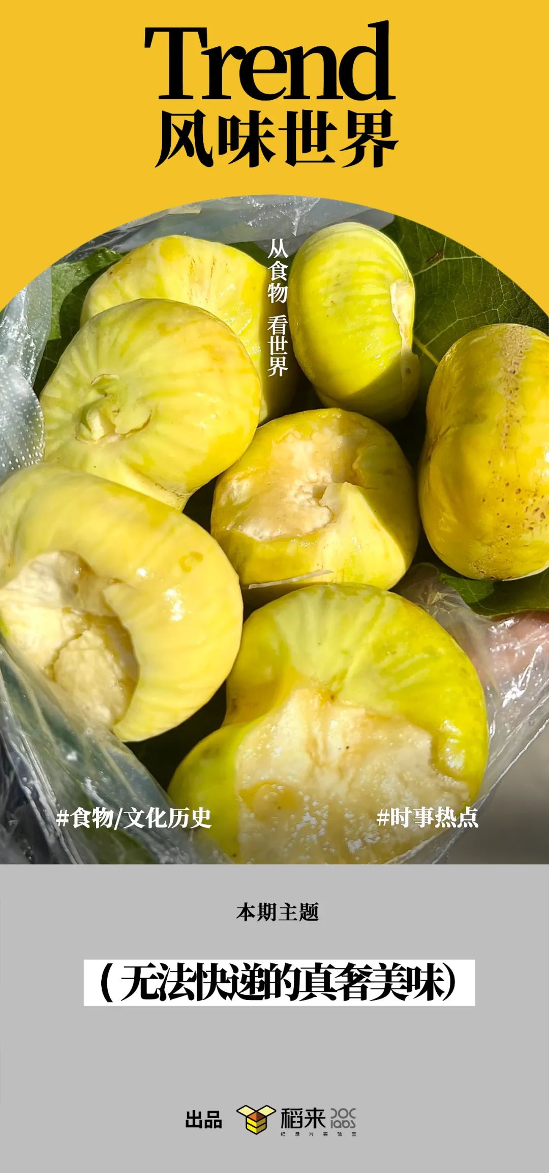 我说的就是新鲜无花果。你或许可以空运买到山东的、云南的,青皮的,紫皮的,但无法在合理成本内买到新鲜且卖相完整的新疆黄皮无花果。物流发展到今天,新疆的无花果依旧走不出新疆。