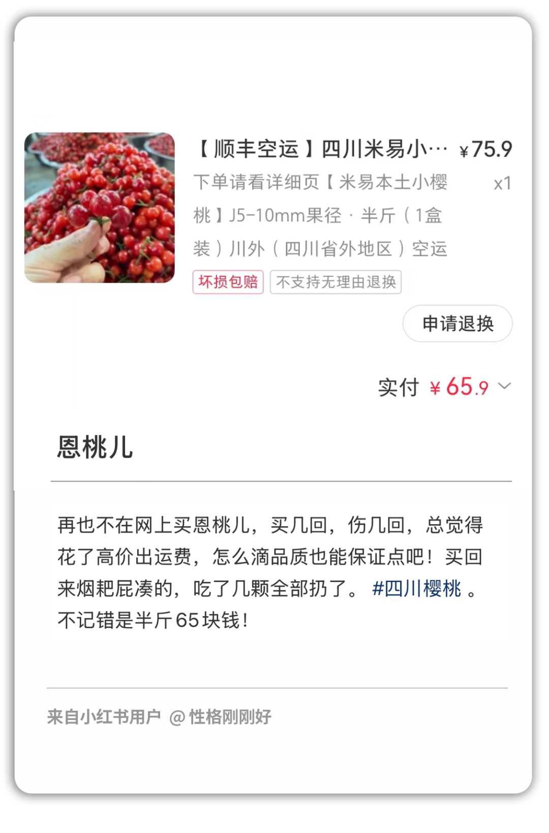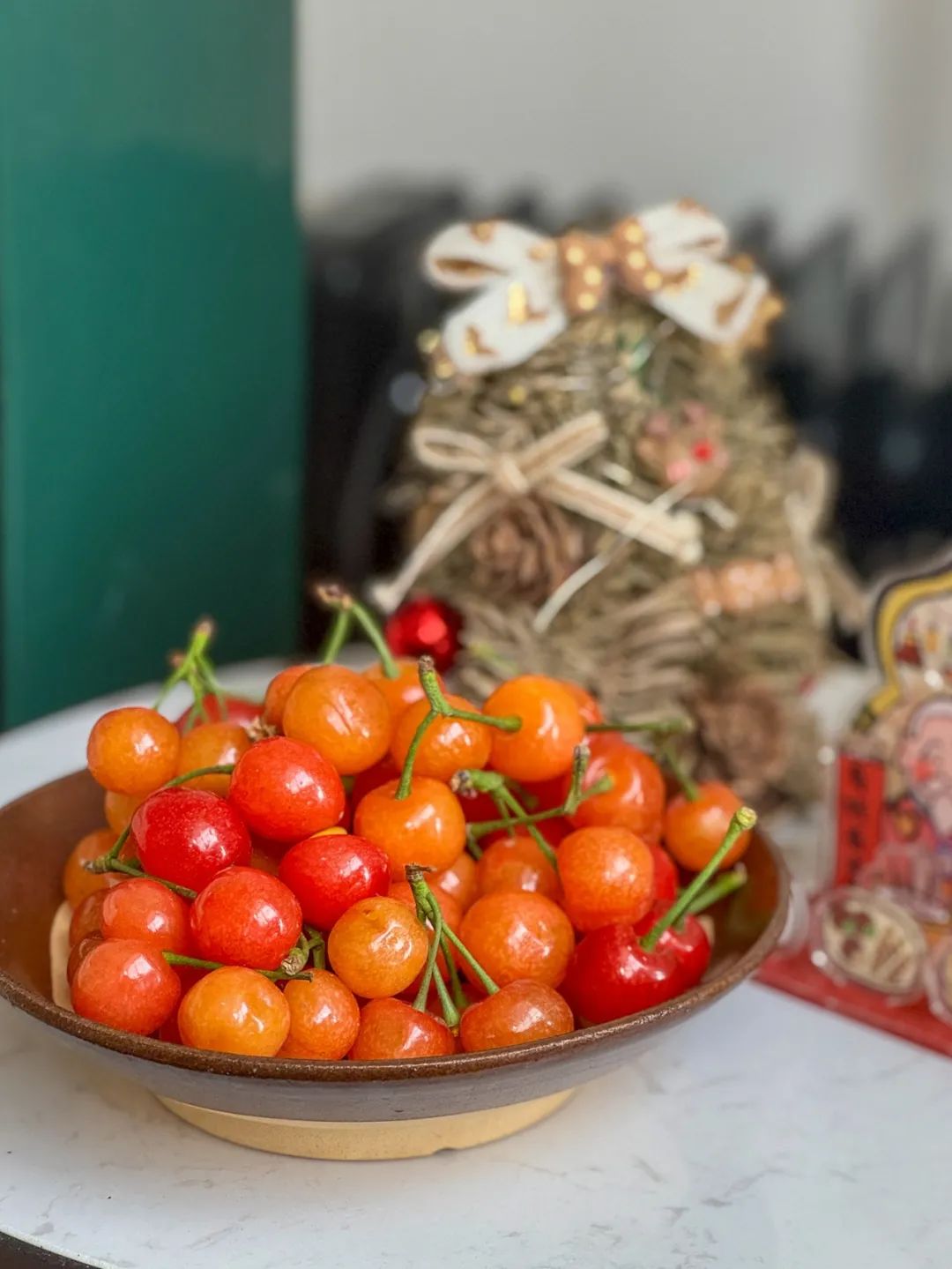 然而我也不知道怎么才能说服大家,四川方言里的恩桃儿/恩特尔,是四川特有的中国本土水果品种,和樱桃、车厘子太不一样了。它皮薄、只有指甲盖大小,颜色有橘红、有深红,是特有的四川春夏色系。