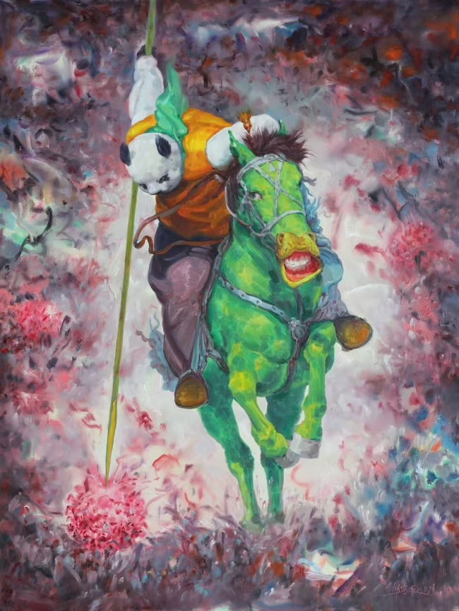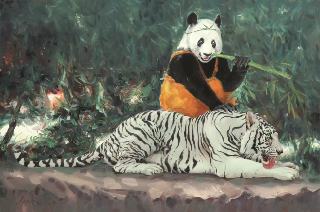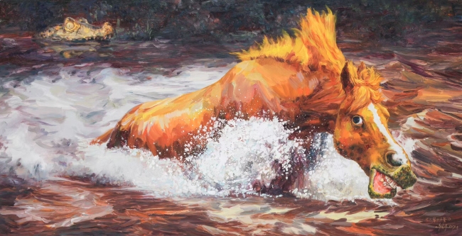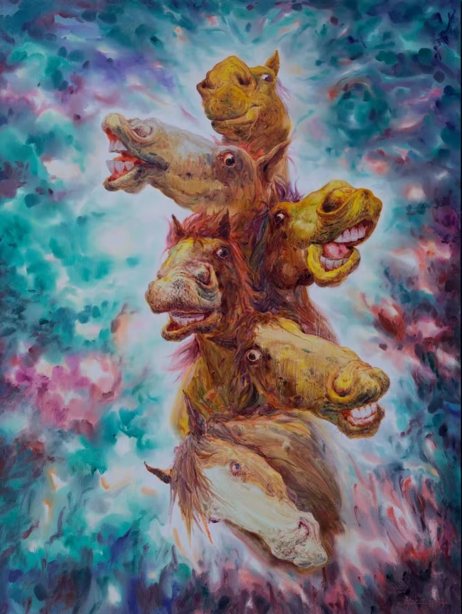 他的作品叙事与言说方式具有浓厚的中国味,如拟人、比喻、抒情、写意等传统手法信手拈来,但他的立场与视角却牢牢扎根于当下。那些看似是简单的动物形象,实则是其心性与观念意识的表征,“此马非马”,画家的意图在禽兽形象中畅快地透溢出来。这种对传统与现代的融合,使他的作品既有深厚的文化底蕴,又能与当代观众产生强烈的情感共鸣。